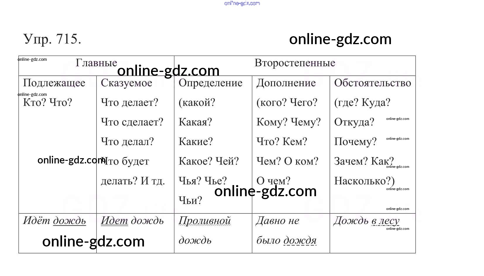 Готовые домашние задания по Русскому языку за 5 класс Учебник Баранов, Ладыженская 2016 - Часть 2. Упражнения 715