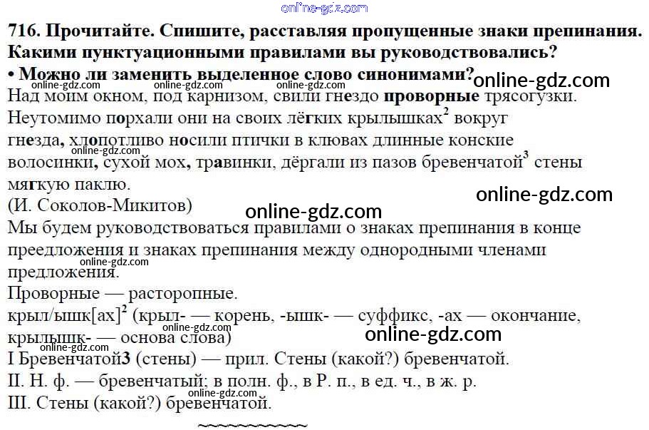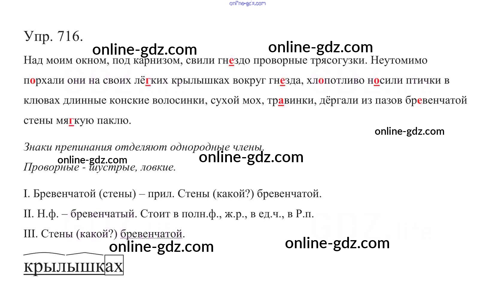 Готовые домашние задания по Русскому языку за 5 класс Учебник Баранов, Ладыженская 2016 - Часть 2. Упражнения 716