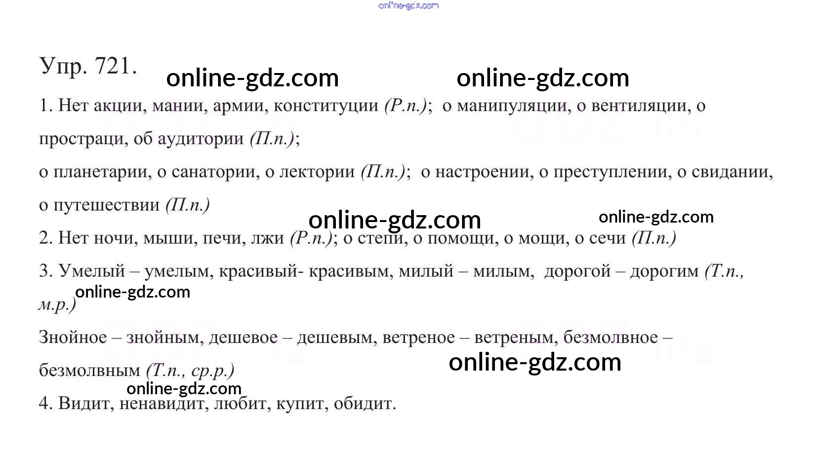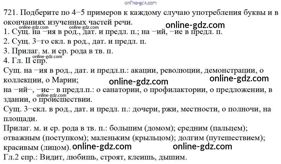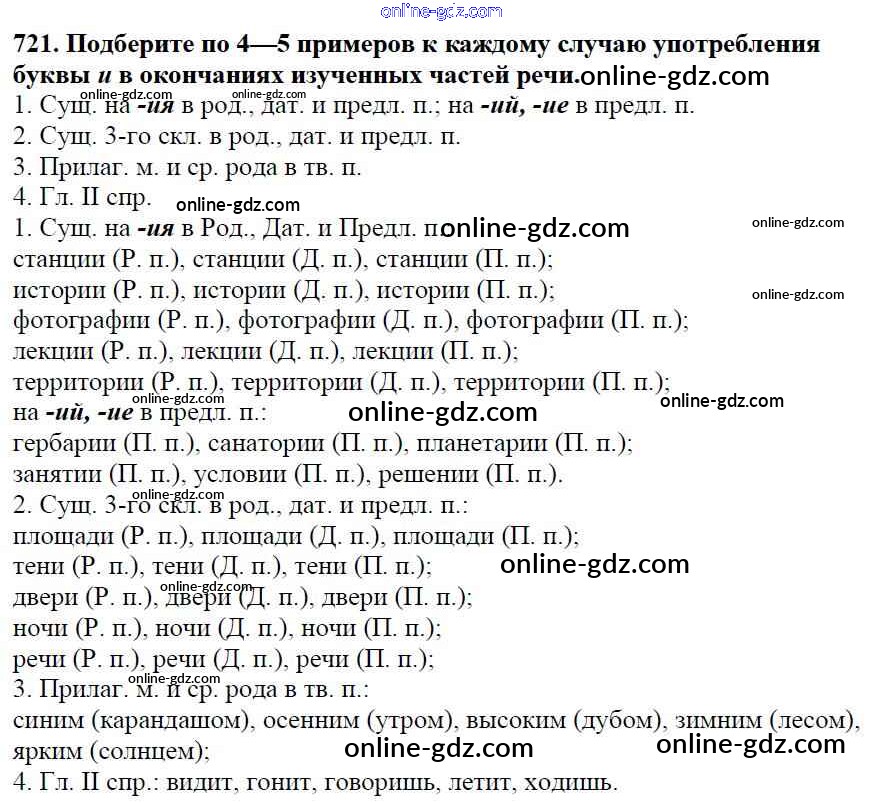 Готовые домашние задания по Русскому языку за 5 класс Учебник Баранов, Ладыженская 2016 - Часть 2. Упражнения 721