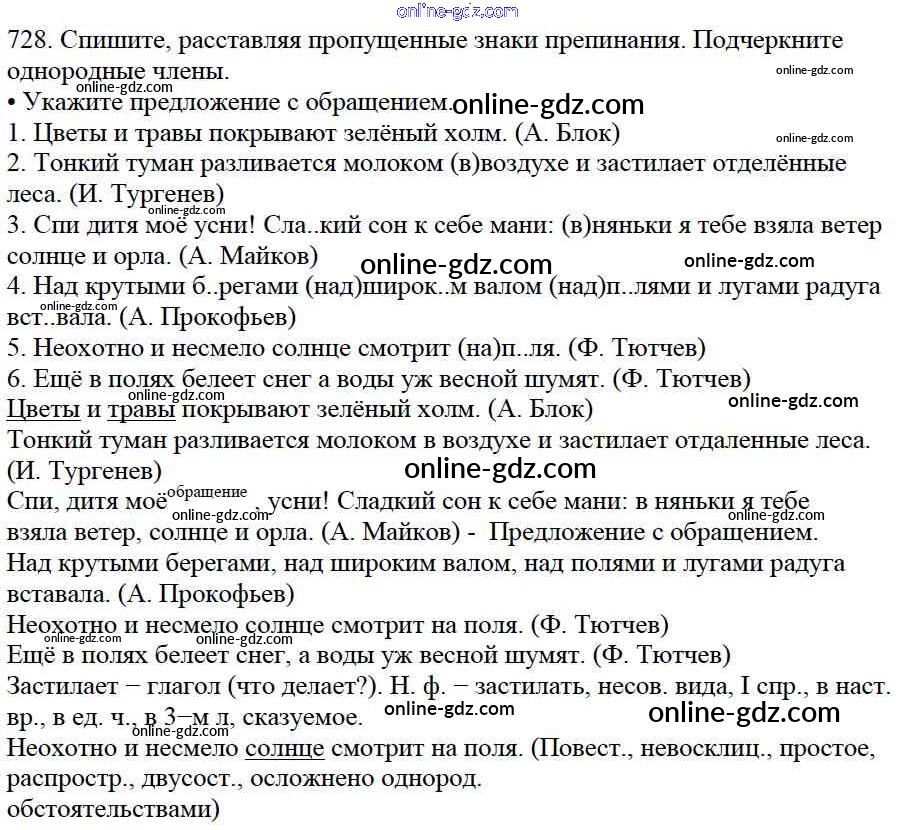 Готовые домашние задания по Русскому языку за 5 класс Учебник Баранов, Ладыженская 2016 - Часть 2. Упражнения 728