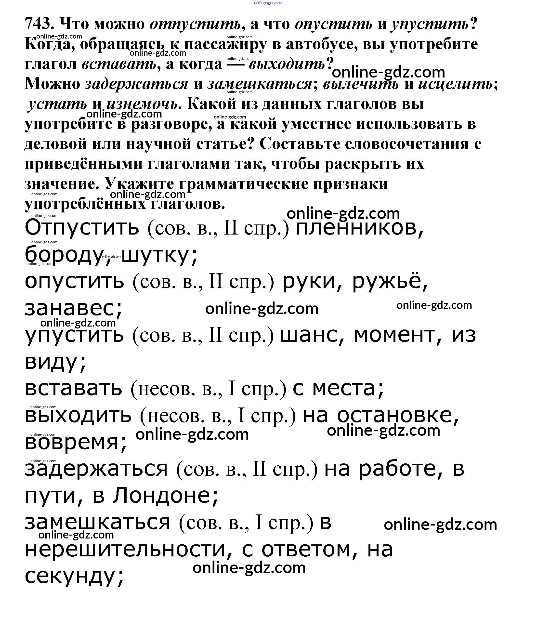 Готовые домашние задания по Русскому языку за 5 класс Учебник Баранов, Ладыженская 2016 - Часть 2. Упражнения 743