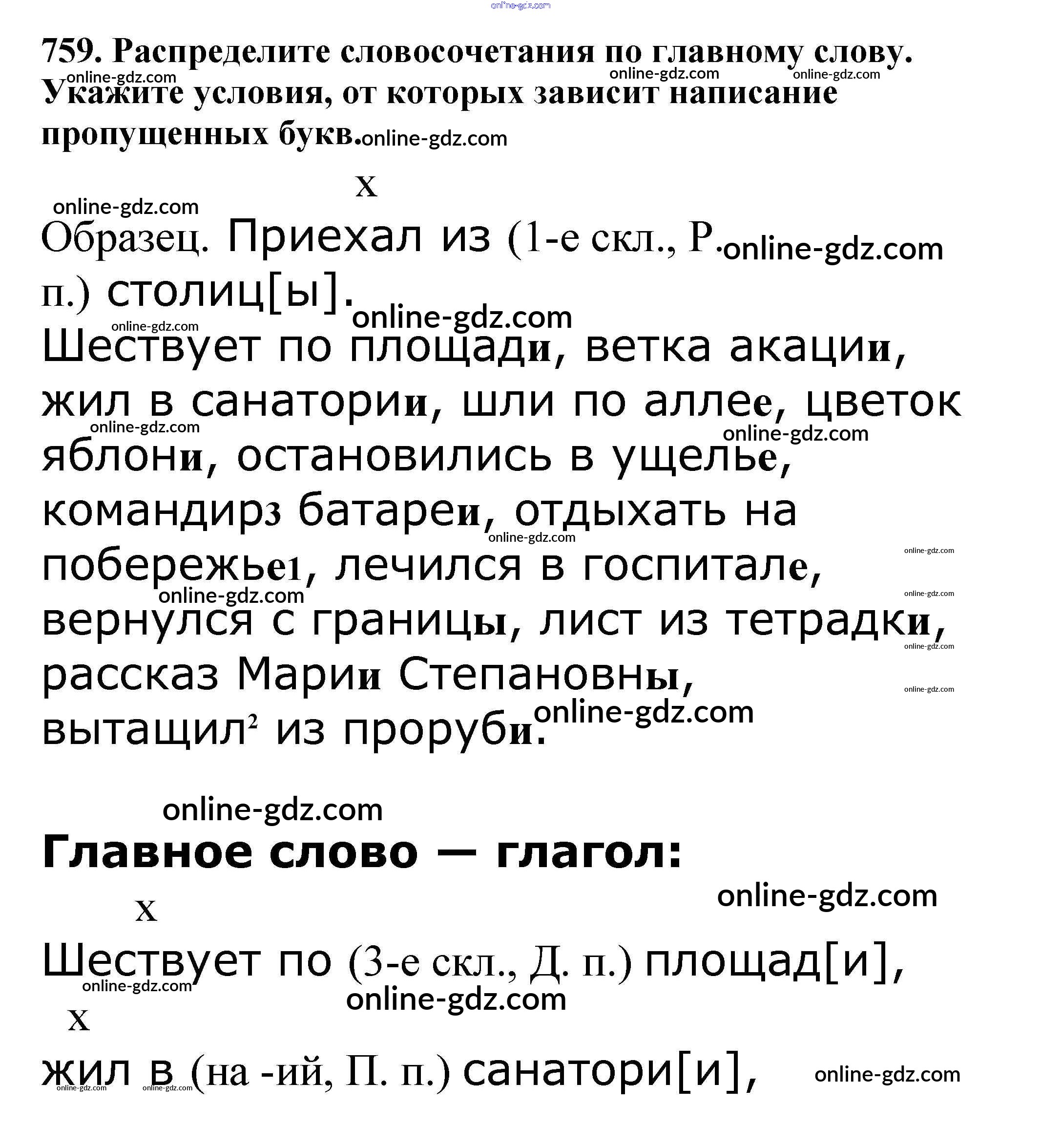 Готовые домашние задания по Русскому языку за 5 класс Учебник Баранов, Ладыженская 2016 - Часть 2. Упражнения 759