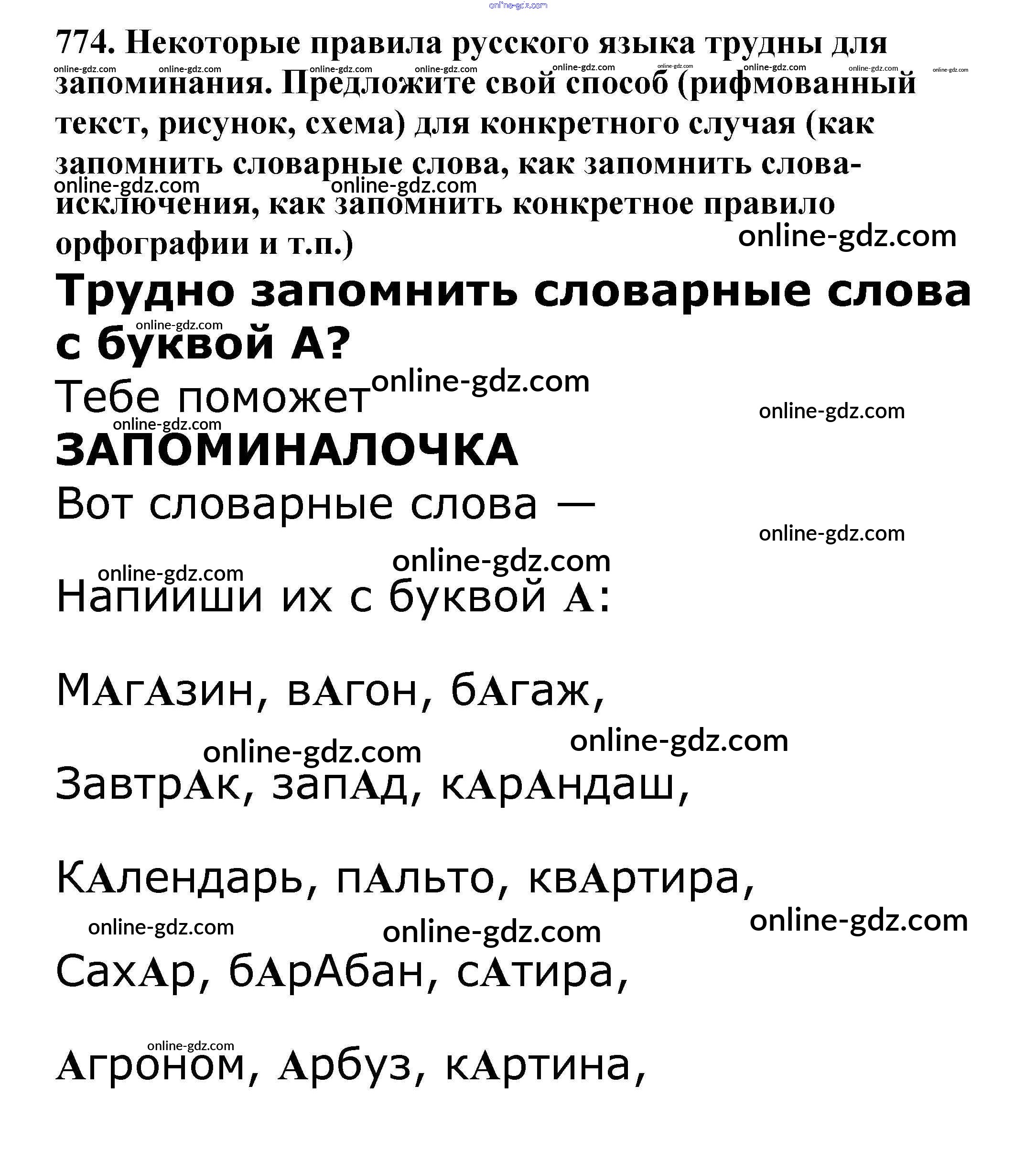 Готовые домашние задания по Русскому языку за 5 класс Учебник Баранов, Ладыженская 2016 - Часть 2. Упражнения 774