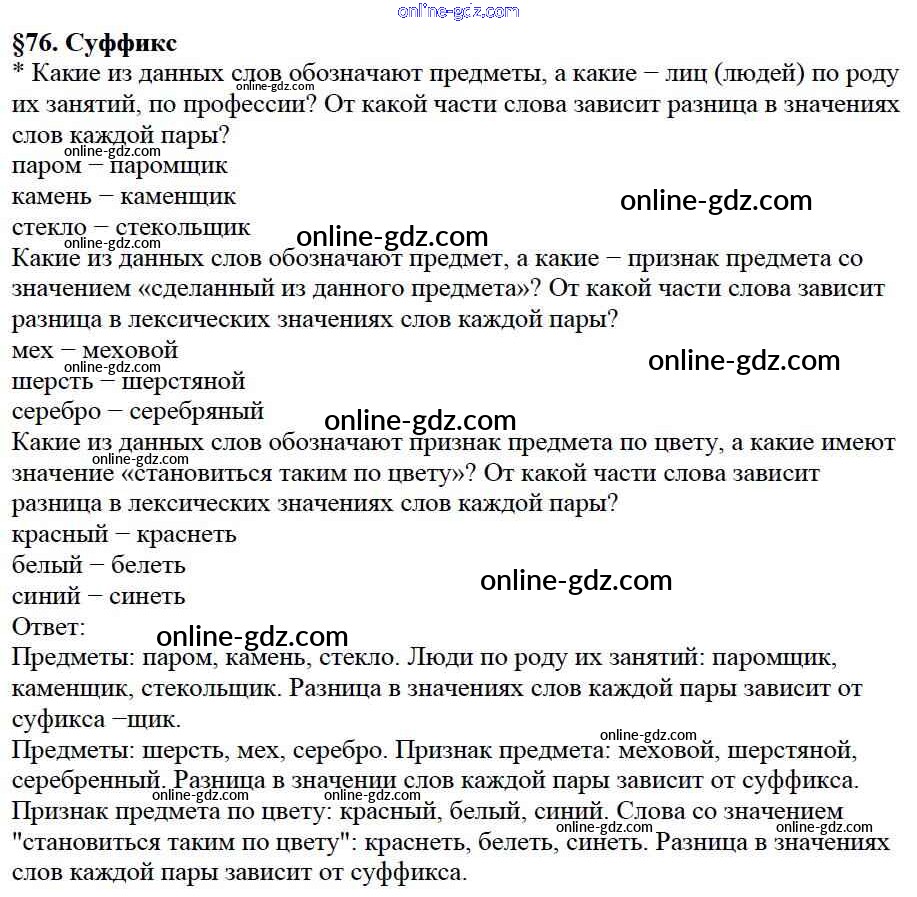 Готовые домашние задания по Русскому языку за 5 класс Учебник Баранов, Ладыженская 2016 - Вопросы §76