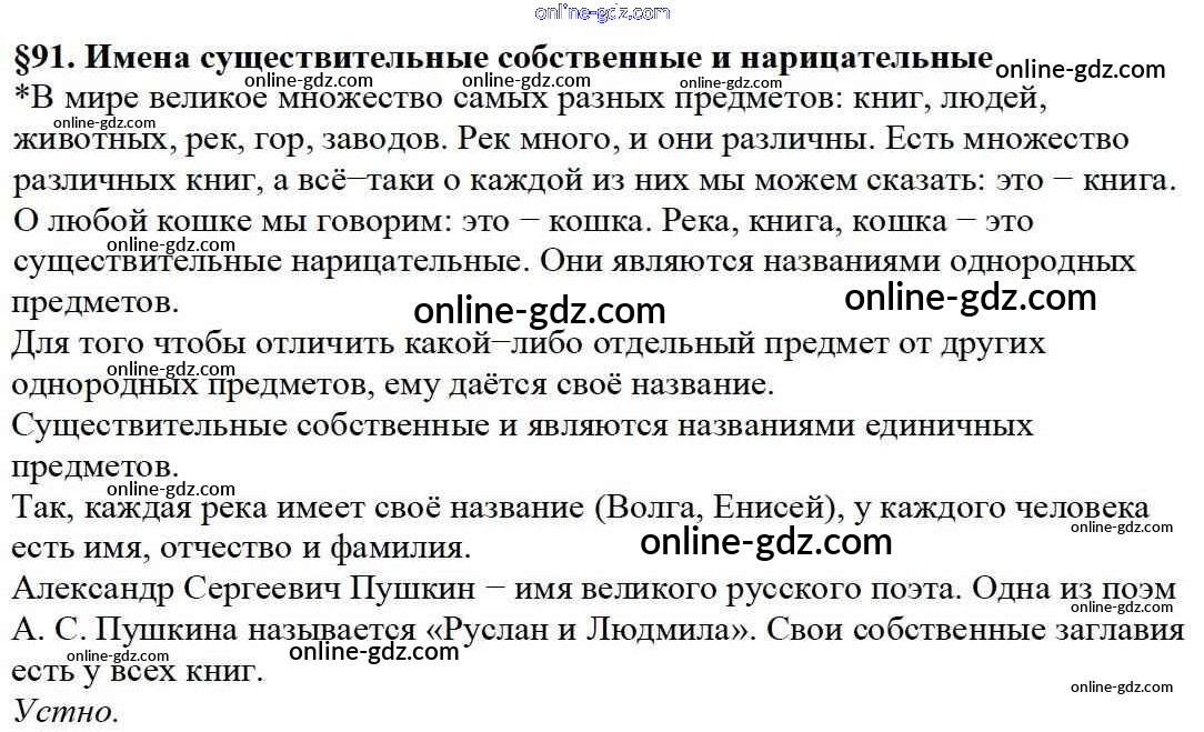 Готовые домашние задания по Русскому языку за 5 класс Учебник Баранов, Ладыженская 2016 - Вопросы §91