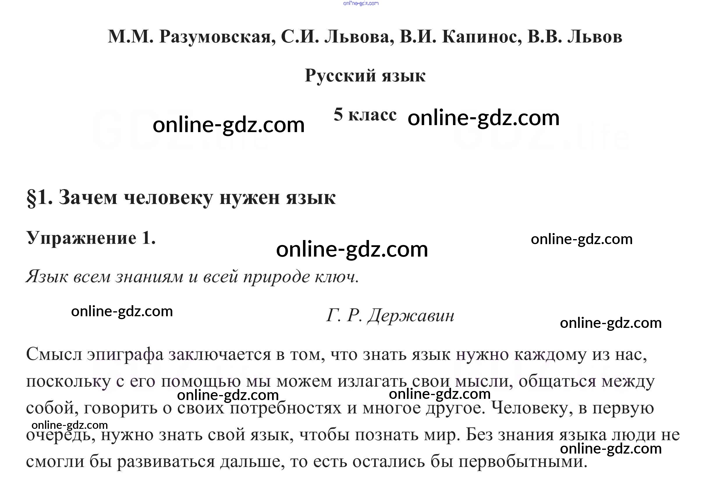 Готовые домашние задания по Русскому языку за 5 класс Учебник Разумовская, Львова 2014 - Упражнения 1