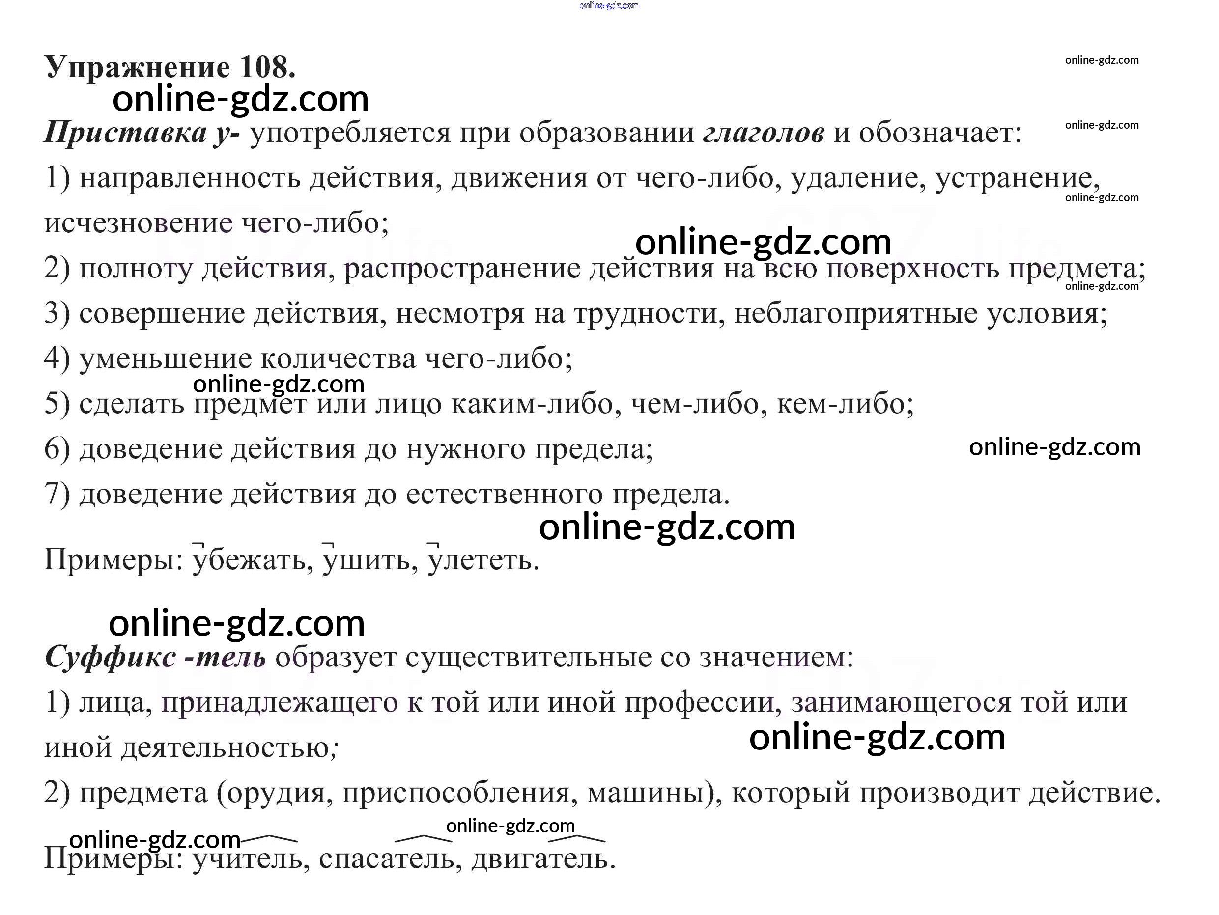 Готовые домашние задания по Русскому языку за 5 класс Учебник Разумовская, Львова 2014 - Упражнения 108