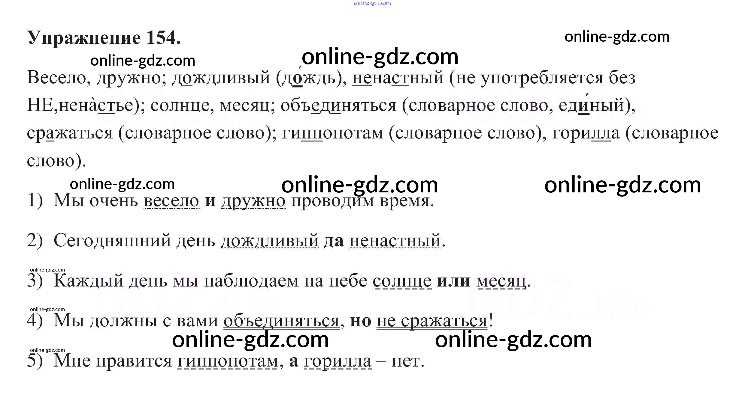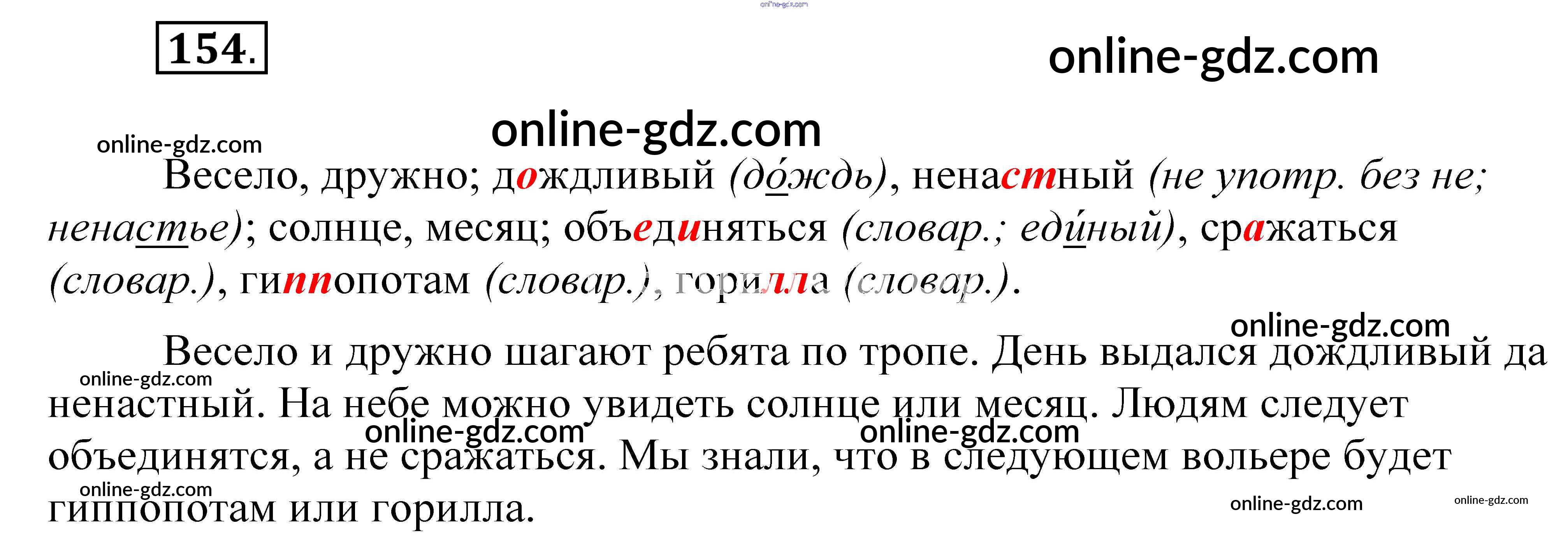 Готовые домашние задания по Русскому языку за 5 класс Учебник Разумовская, Львова 2014 - Упражнения 154