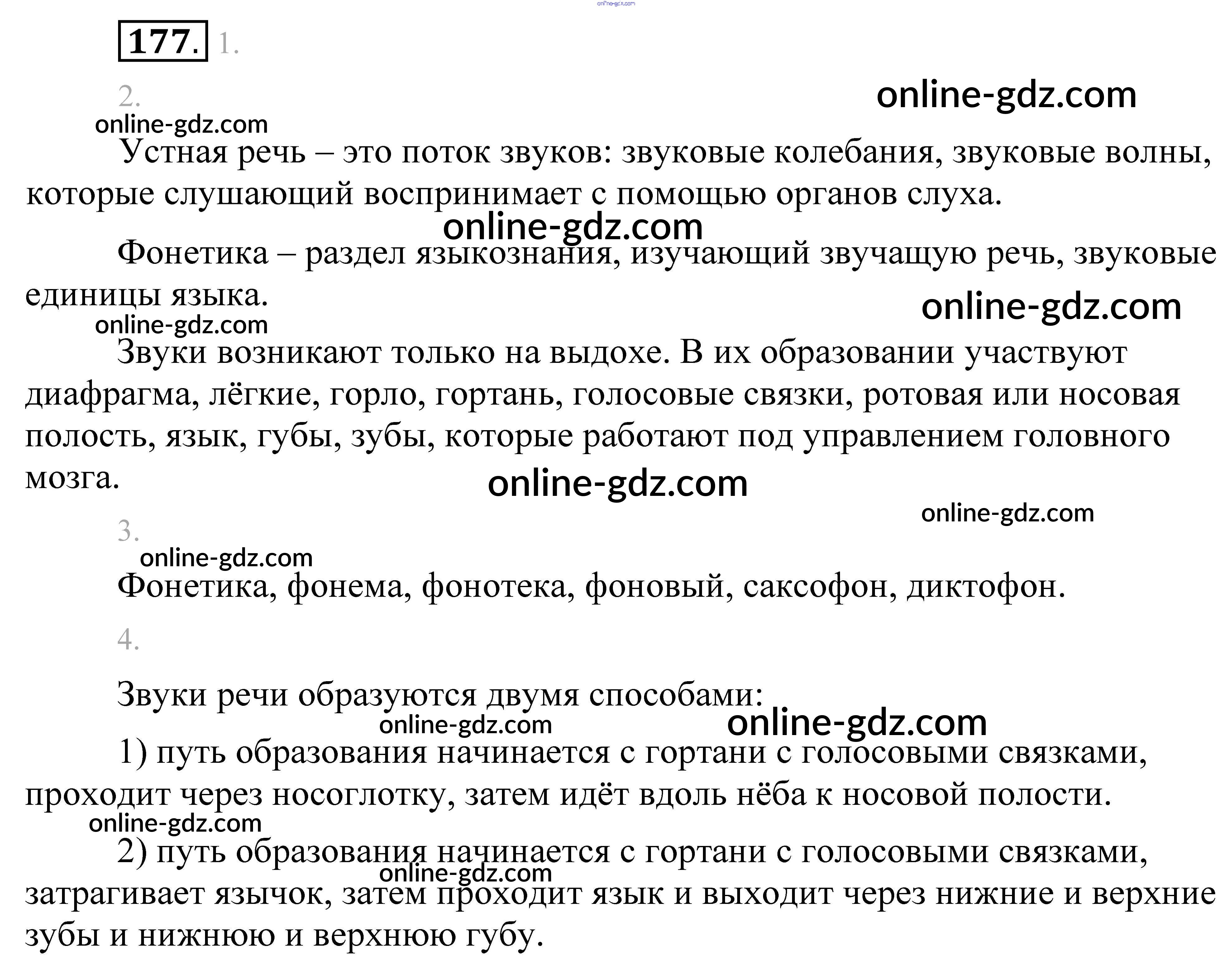 Готовые домашние задания по Русскому языку за 5 класс Учебник Разумовская, Львова 2014 - Упражнения 177