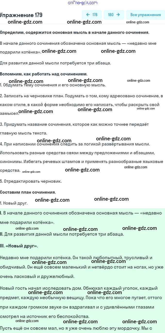 Готовые домашние задания по Русскому языку за 5 класс Учебник Разумовская, Львова 2014 - Упражнения 179