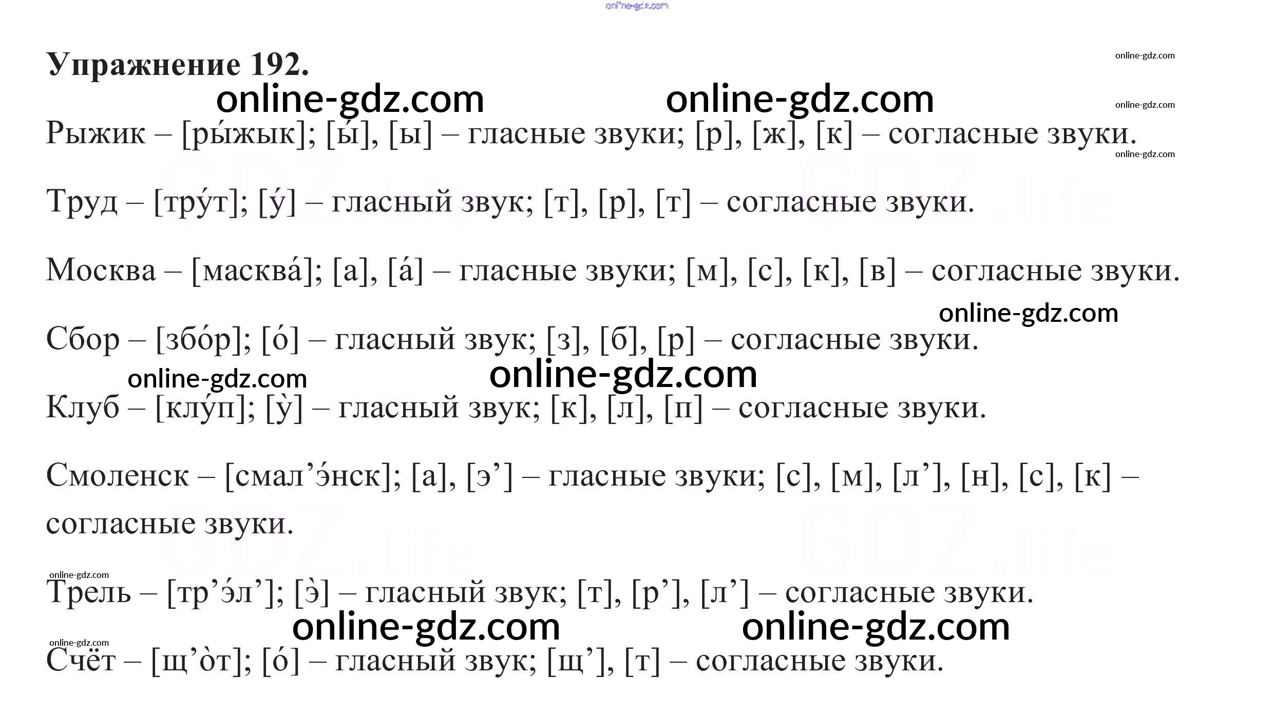 Готовые домашние задания по Русскому языку за 5 класс Учебник Разумовская, Львова 2014 - Упражнения 192