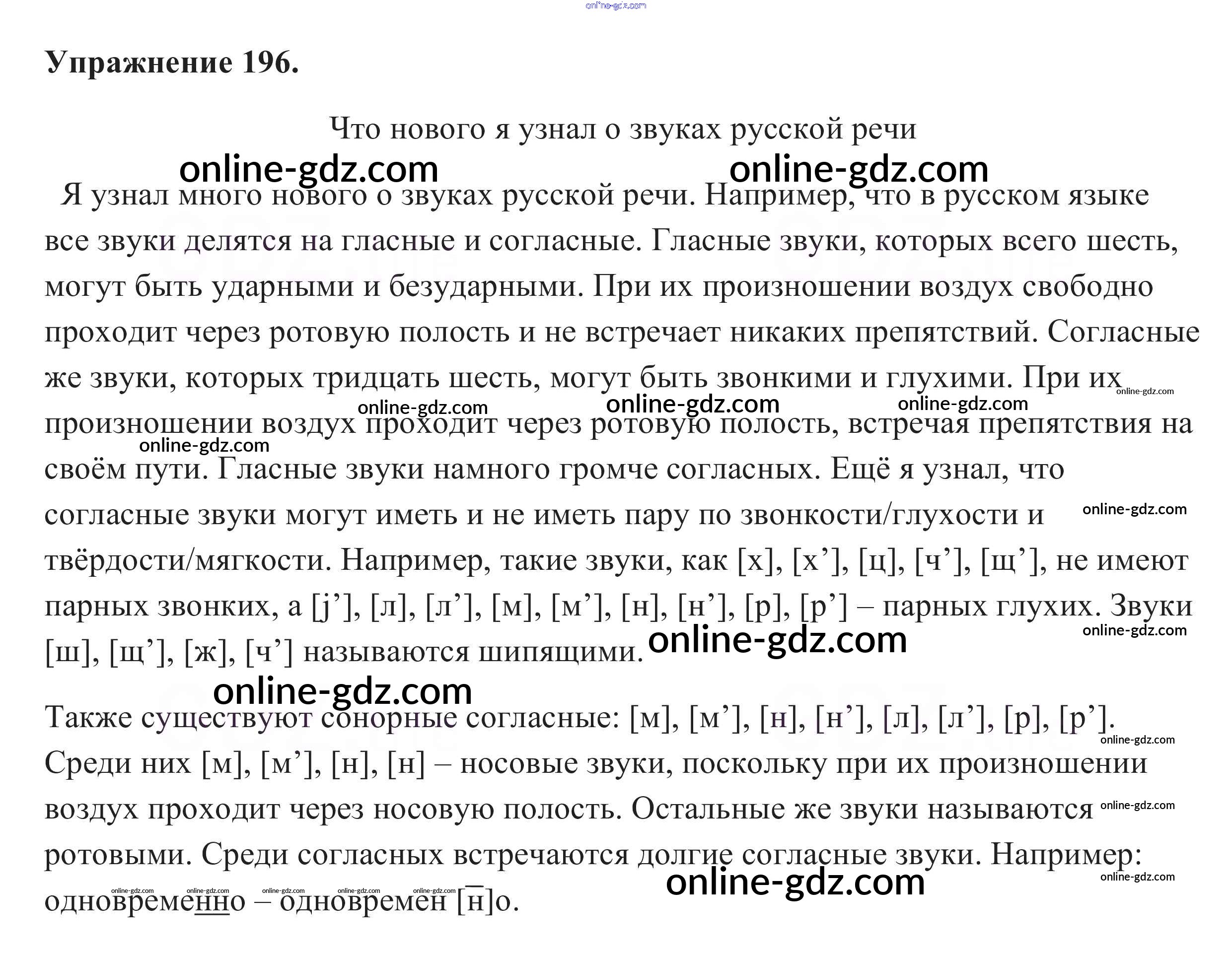 Готовые домашние задания по Русскому языку за 5 класс Учебник Разумовская, Львова 2014 - Упражнения 196