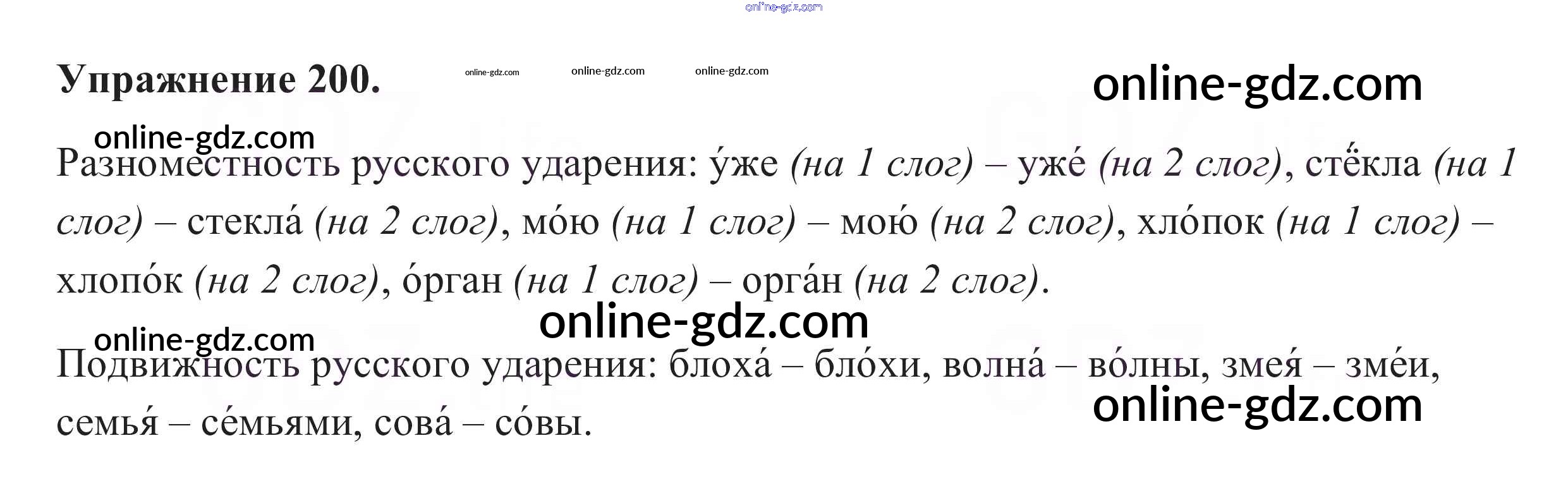 Готовые домашние задания по Русскому языку за 5 класс Учебник Разумовская, Львова 2014 - Упражнения 200