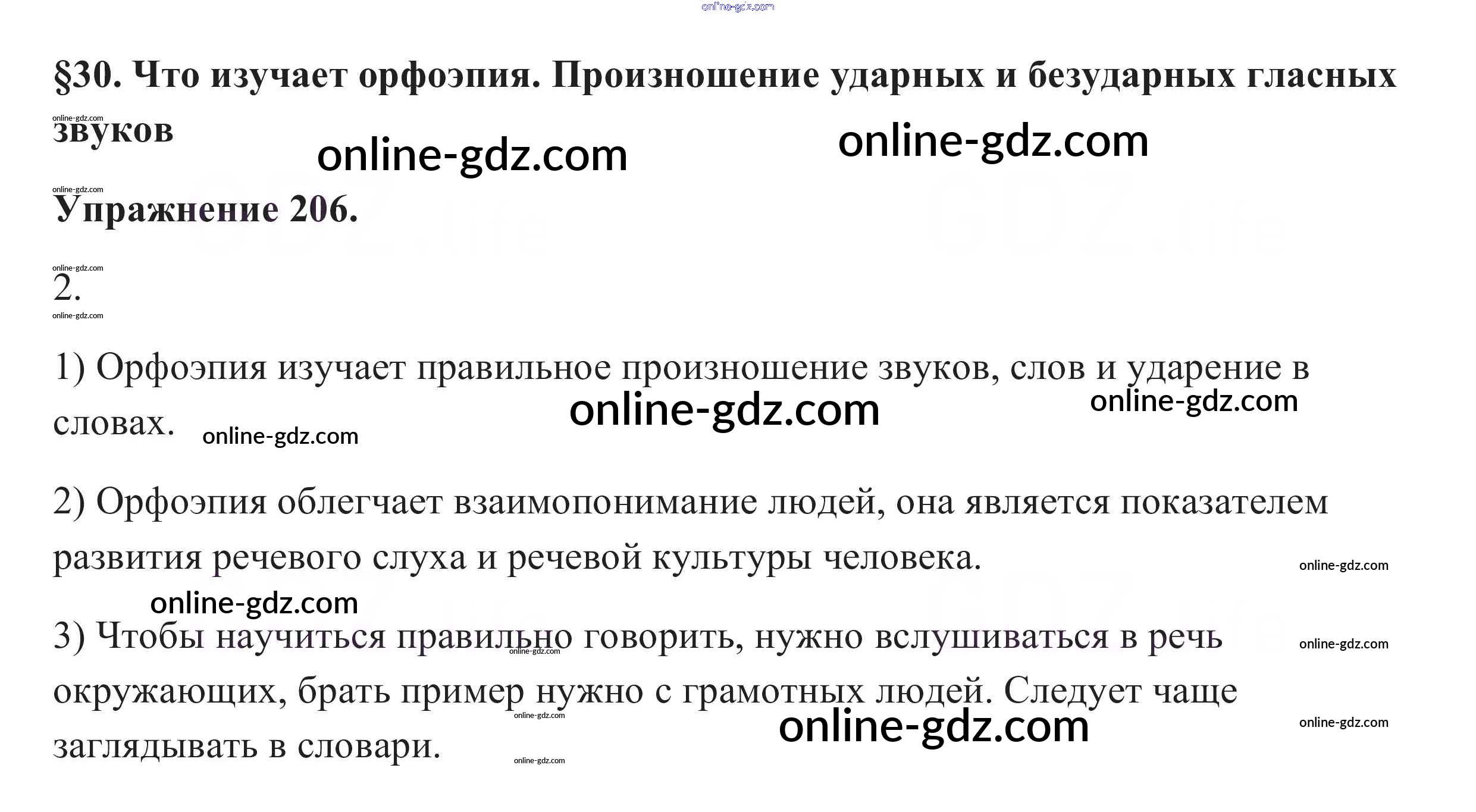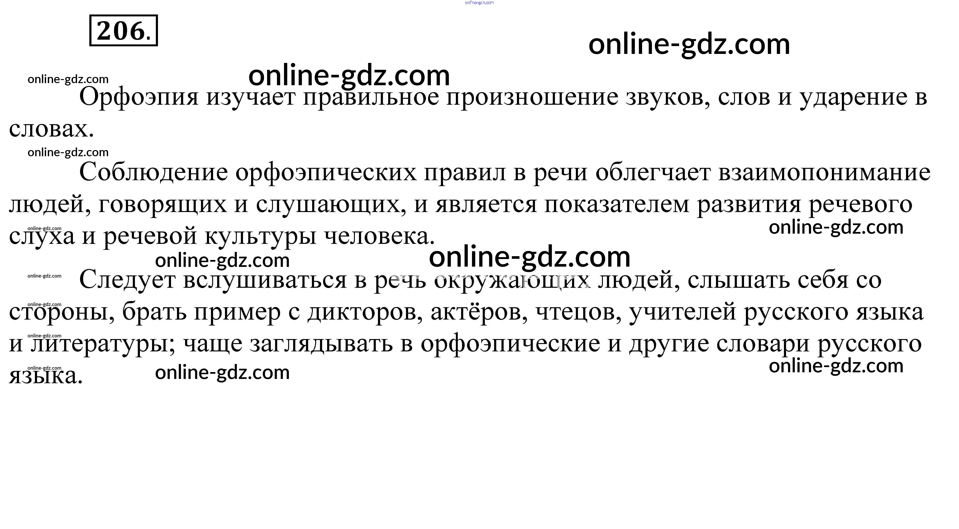 Готовые домашние задания по Русскому языку за 5 класс Учебник Разумовская, Львова 2014 - Упражнения 206