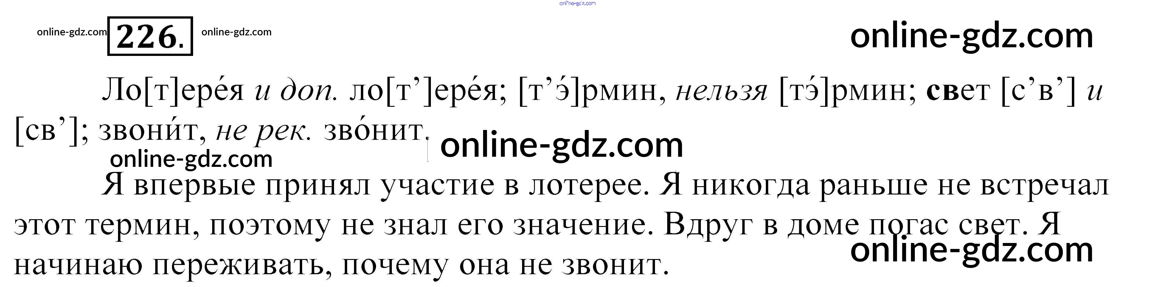 Готовые домашние задания по Русскому языку за 5 класс Учебник Разумовская, Львова 2014 - Упражнения 226