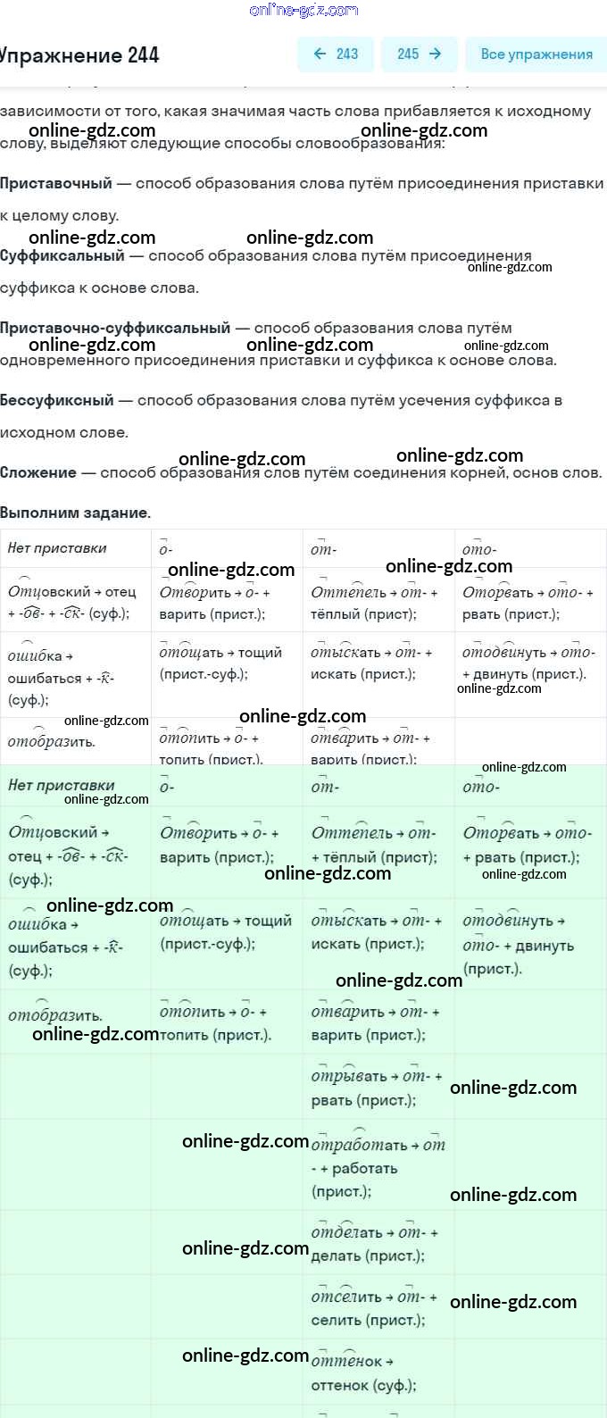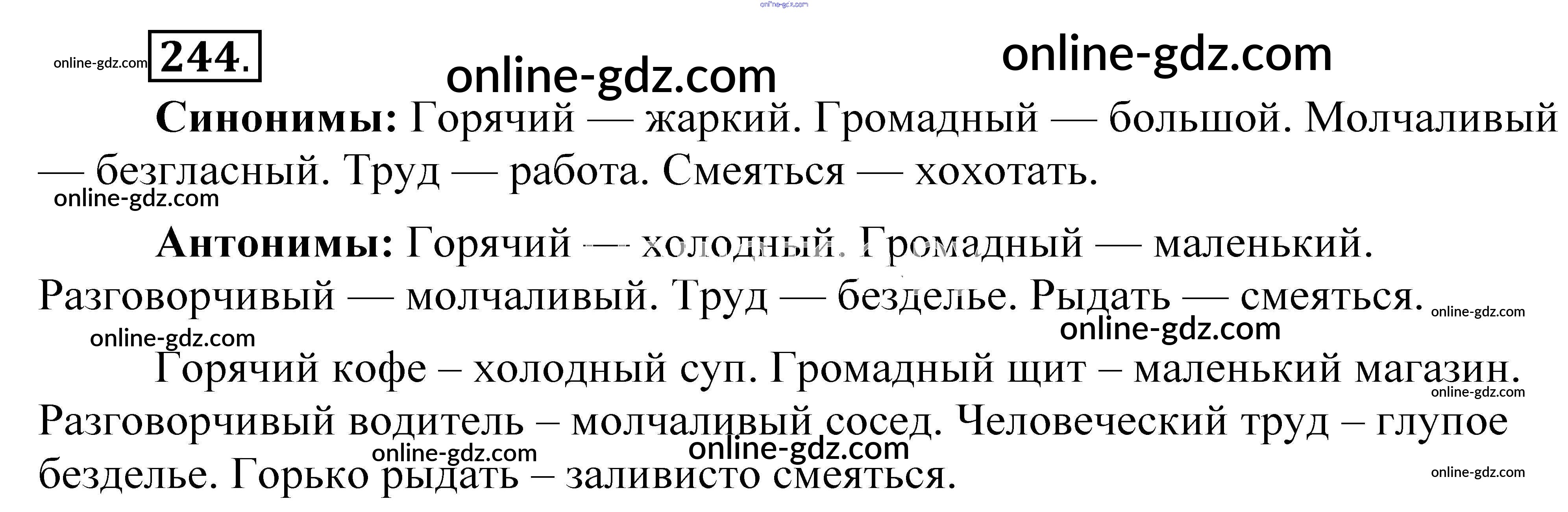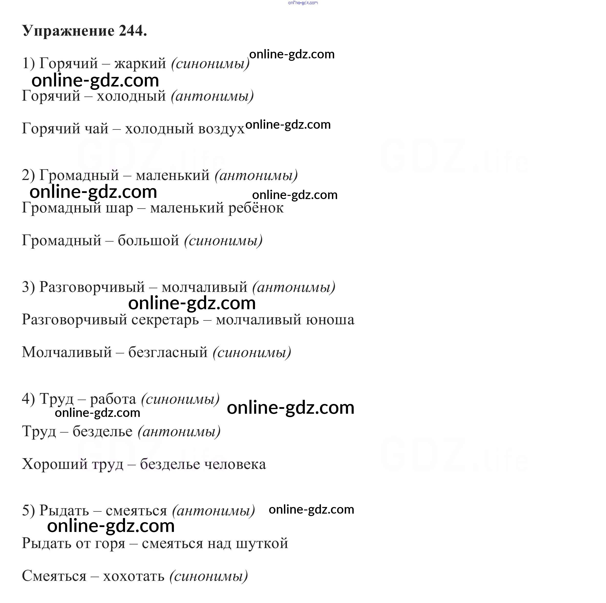 Готовые домашние задания по Русскому языку за 5 класс Учебник Разумовская, Львова 2014 - Упражнения 244