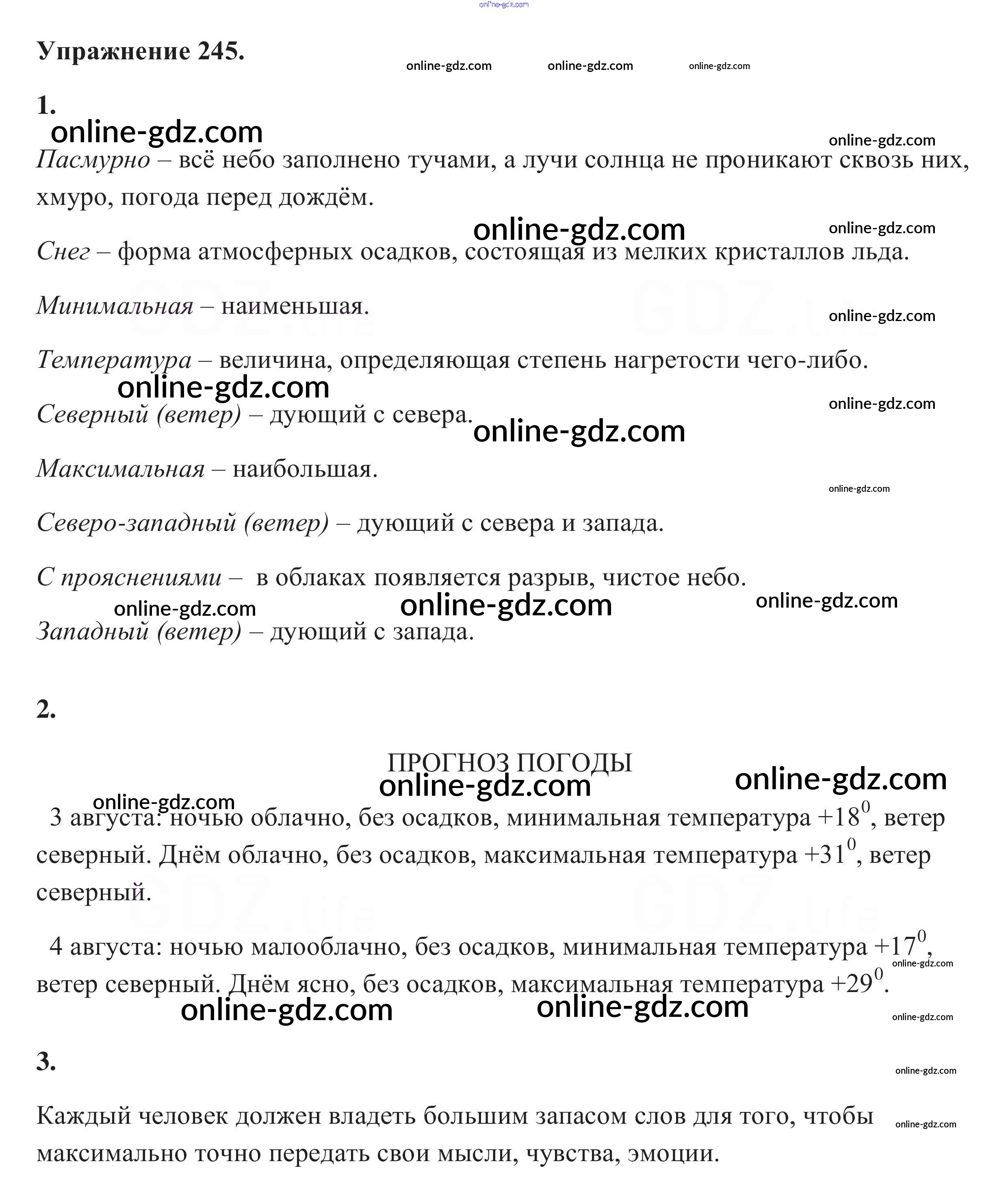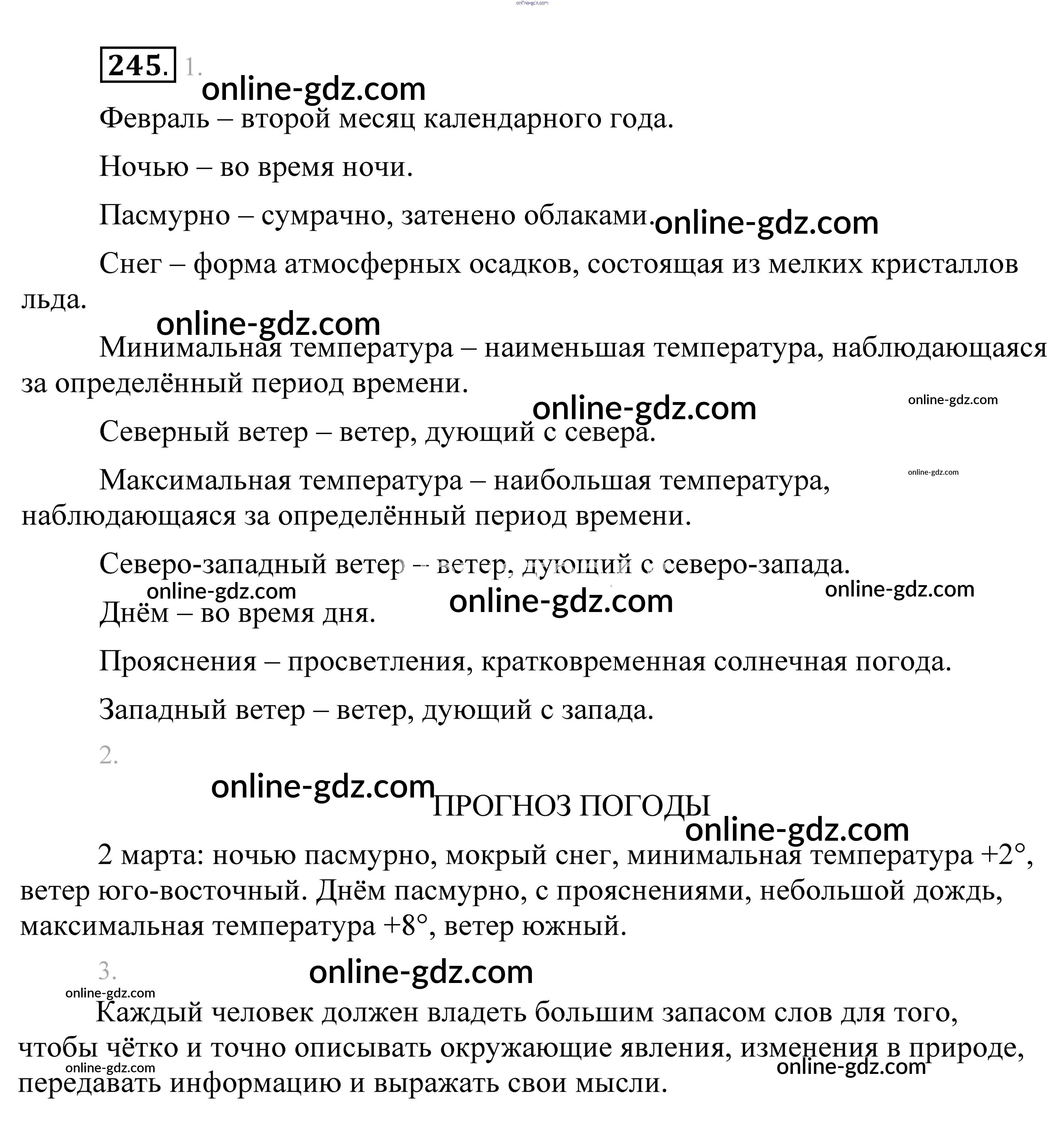 Готовые домашние задания по Русскому языку за 5 класс Учебник Разумовская, Львова 2014 - Упражнения 245