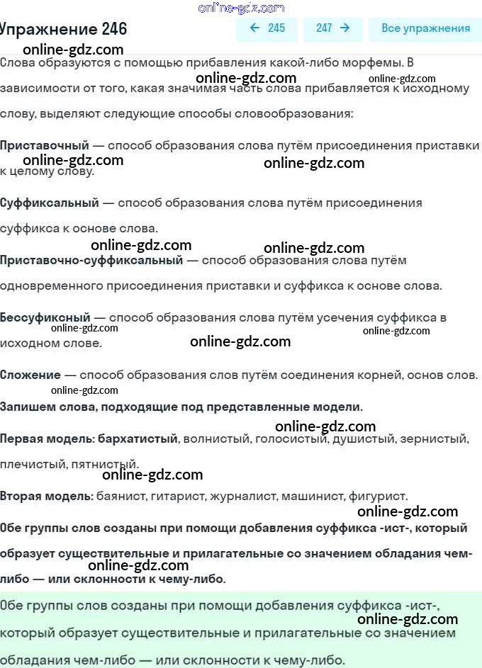 Готовые домашние задания по Русскому языку за 5 класс Учебник Разумовская, Львова 2014 - Упражнения 246