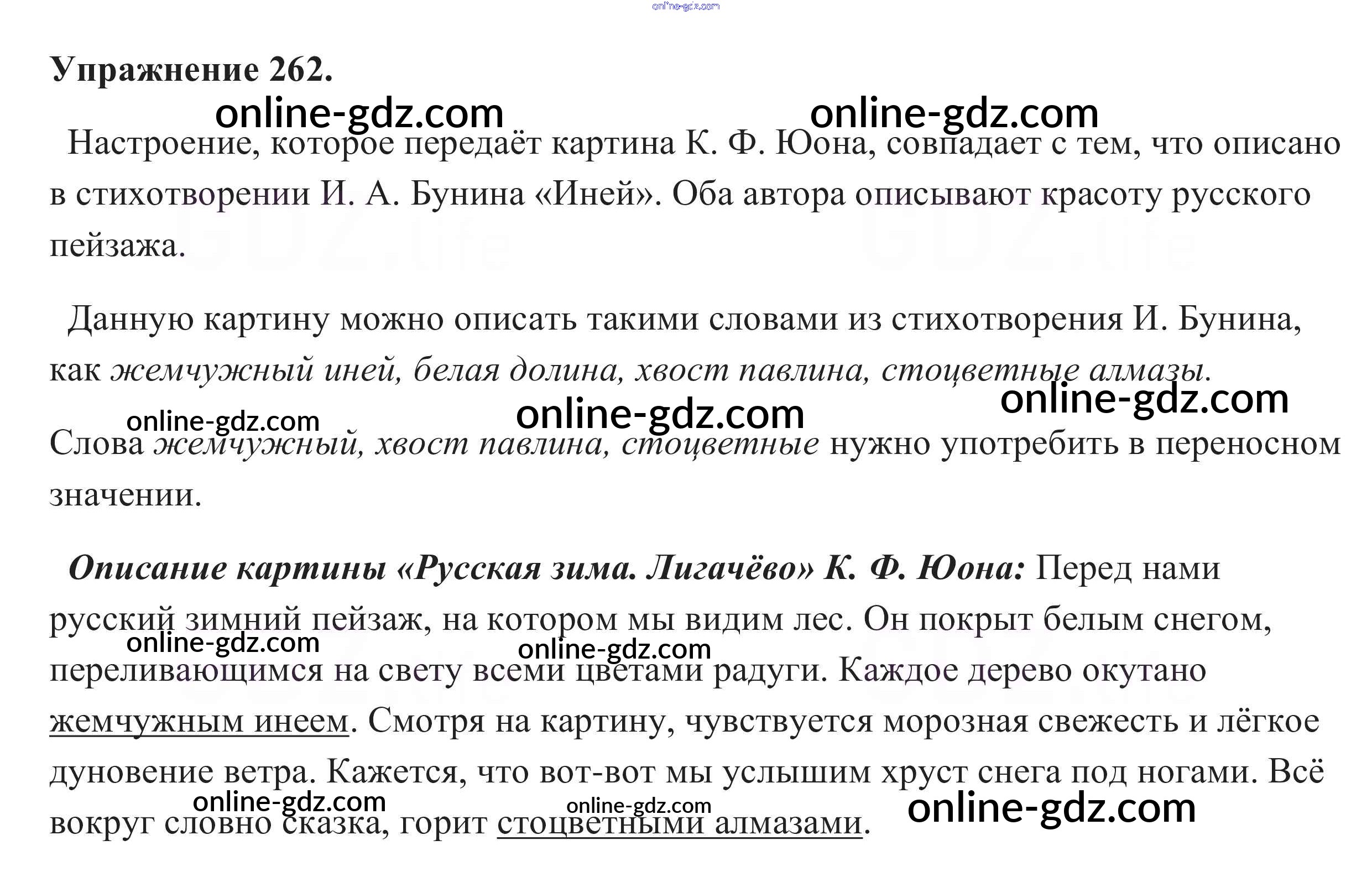 Готовые домашние задания по Русскому языку за 5 класс Учебник Разумовская, Львова 2014 - Упражнения 262