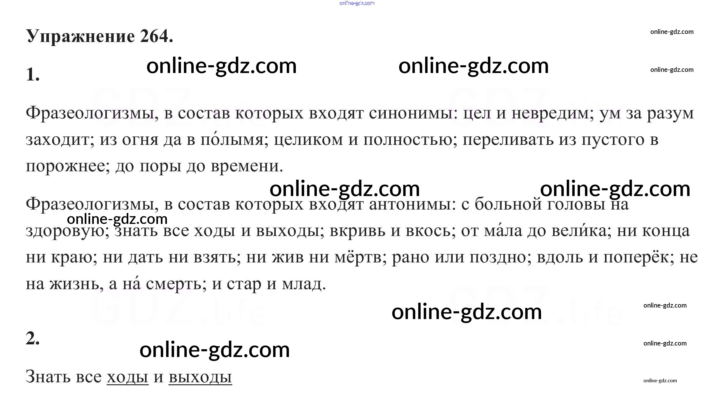 Готовые домашние задания по Русскому языку за 5 класс Учебник Разумовская, Львова 2014 - Упражнения 264