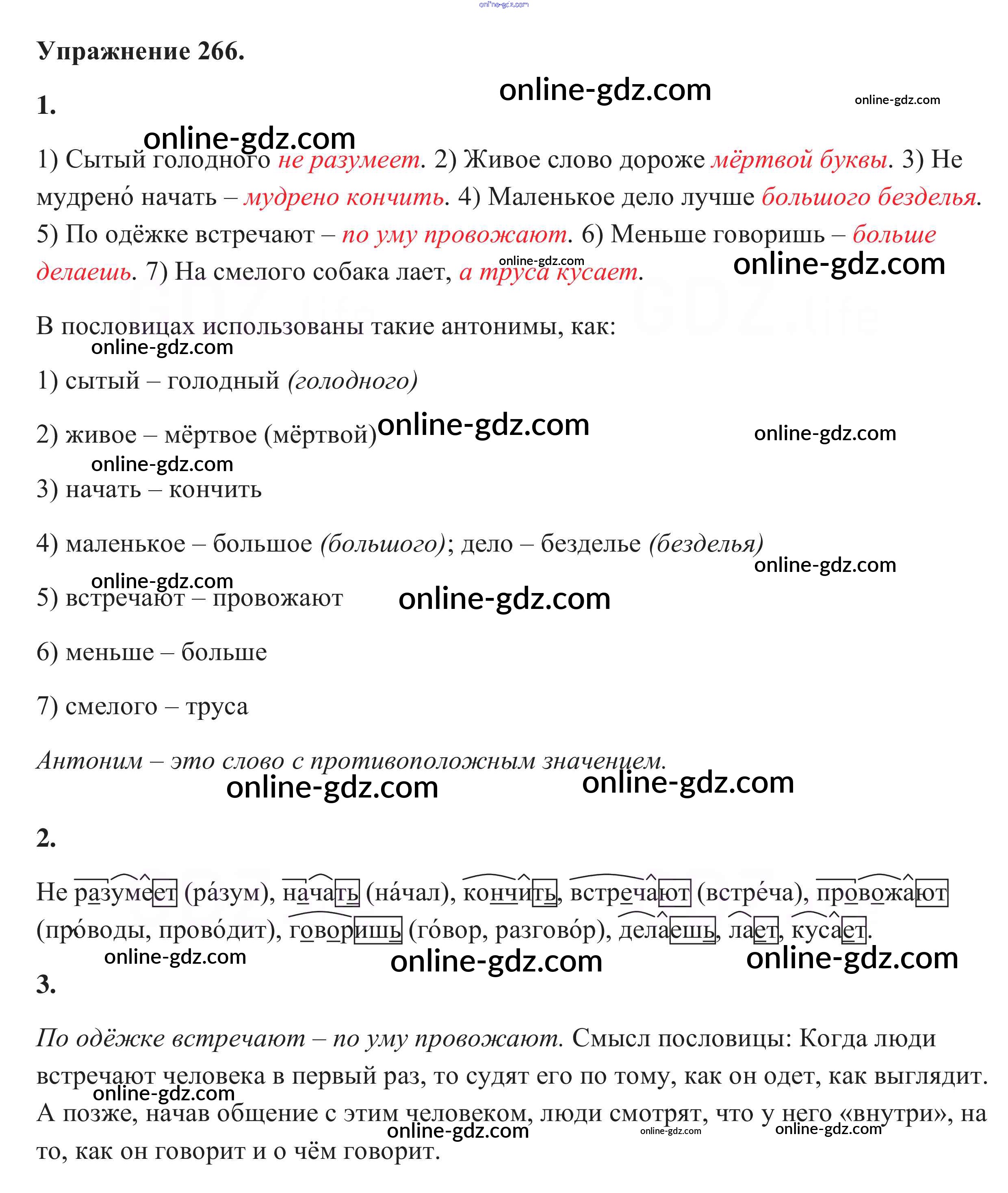 Готовые домашние задания по Русскому языку за 5 класс Учебник Разумовская, Львова 2014 - Упражнения 266