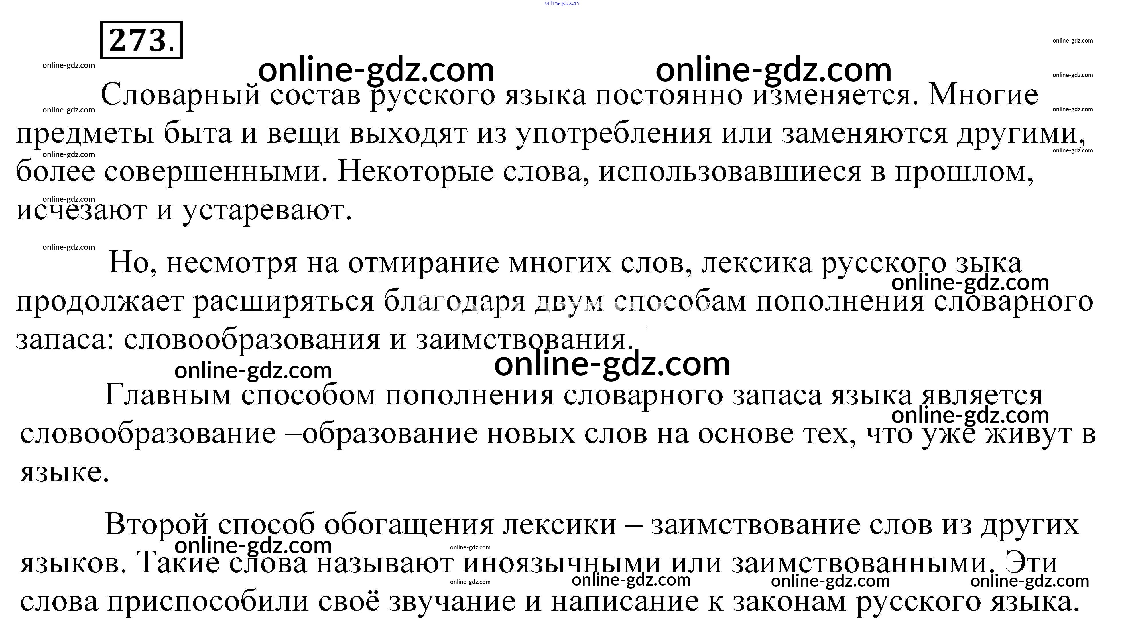 Готовые домашние задания по Русскому языку за 5 класс Учебник Разумовская, Львова 2014 - Упражнения 273