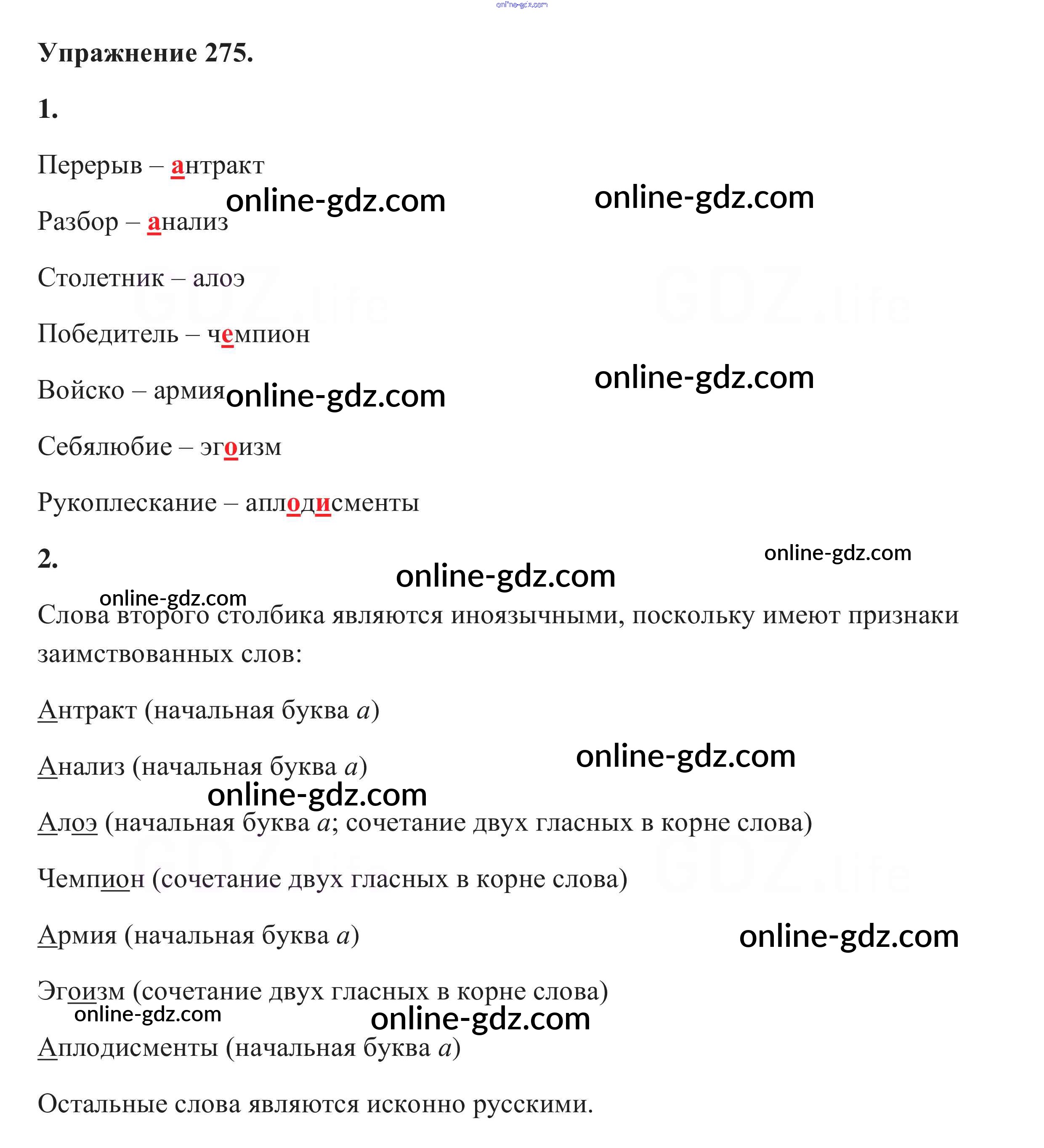 Готовые домашние задания по Русскому языку за 5 класс Учебник Разумовская, Львова 2014 - Упражнения 275