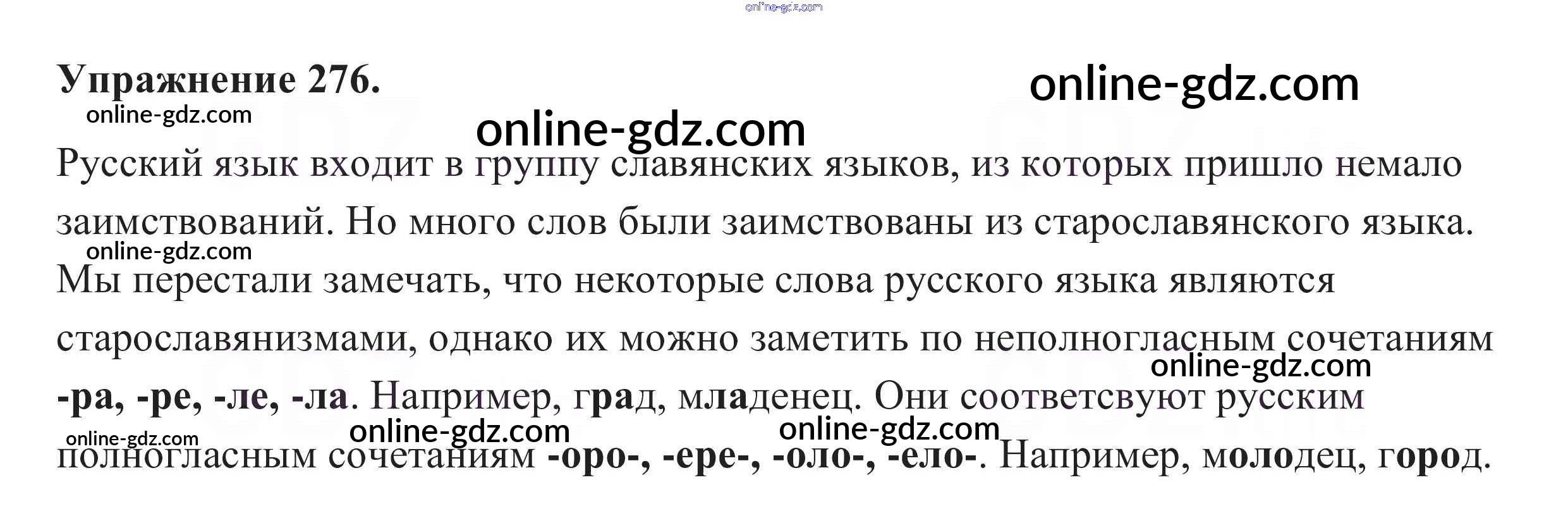 Готовые домашние задания по Русскому языку за 5 класс Учебник Разумовская, Львова 2014 - Упражнения 276