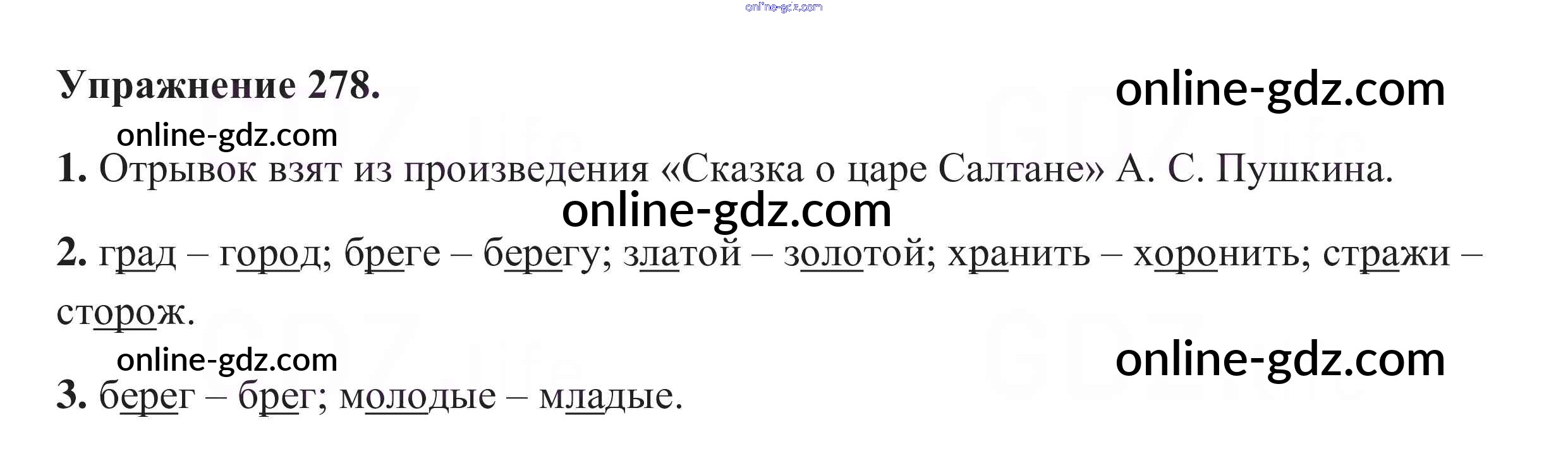 Готовые домашние задания по Русскому языку за 5 класс Учебник Разумовская, Львова 2014 - Упражнения 278