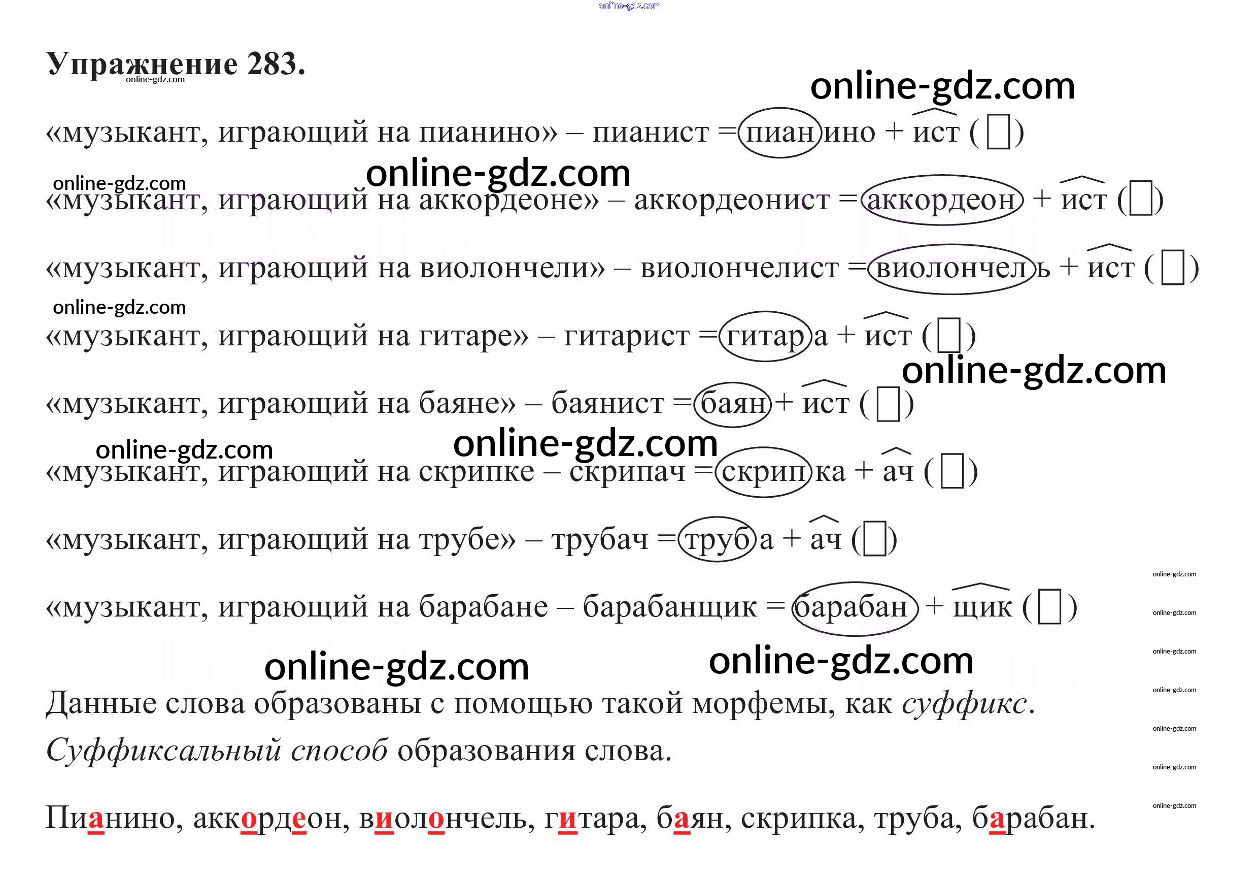 Готовые домашние задания по Русскому языку за 5 класс Учебник Разумовская, Львова 2014 - Упражнения 283