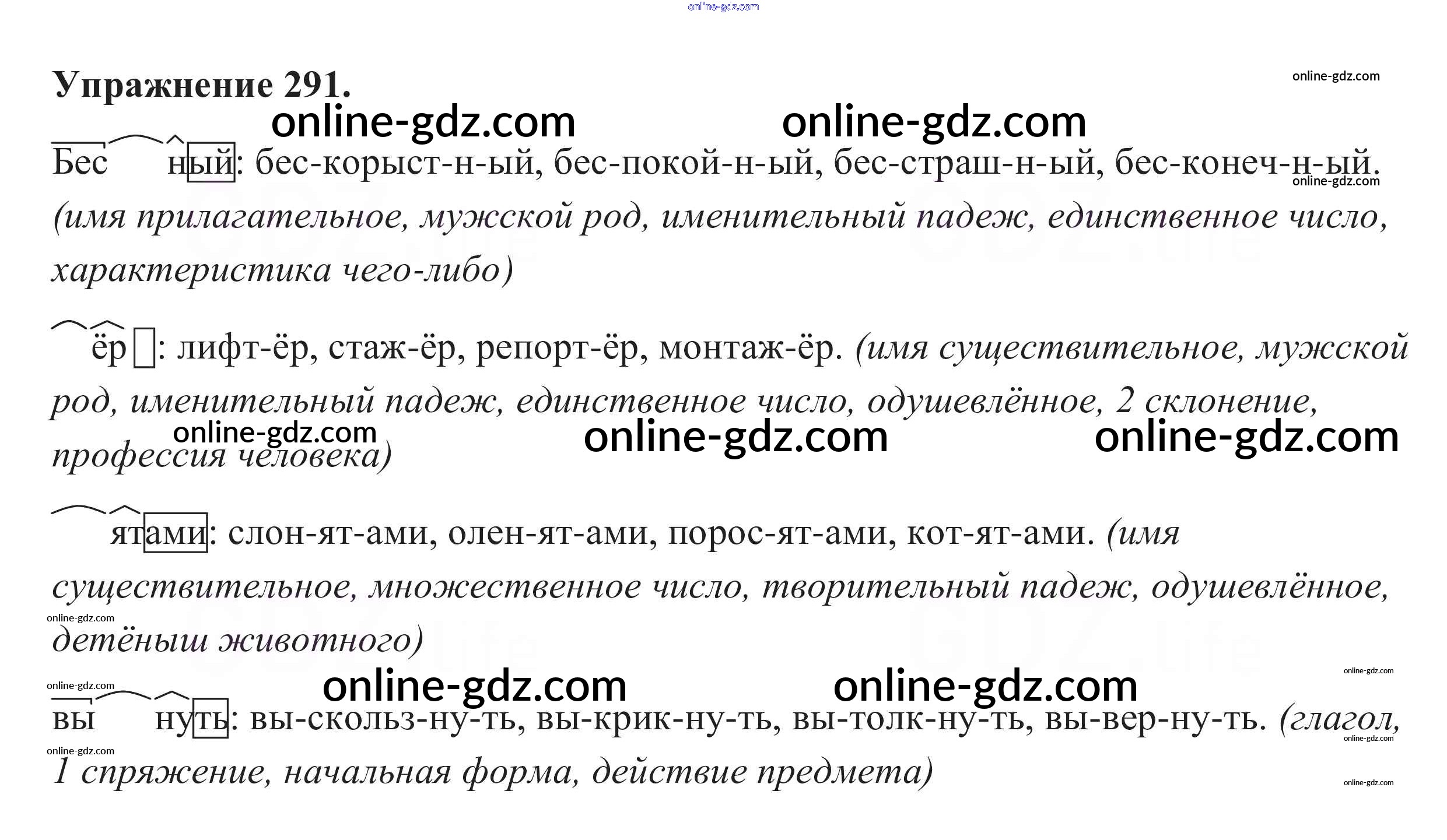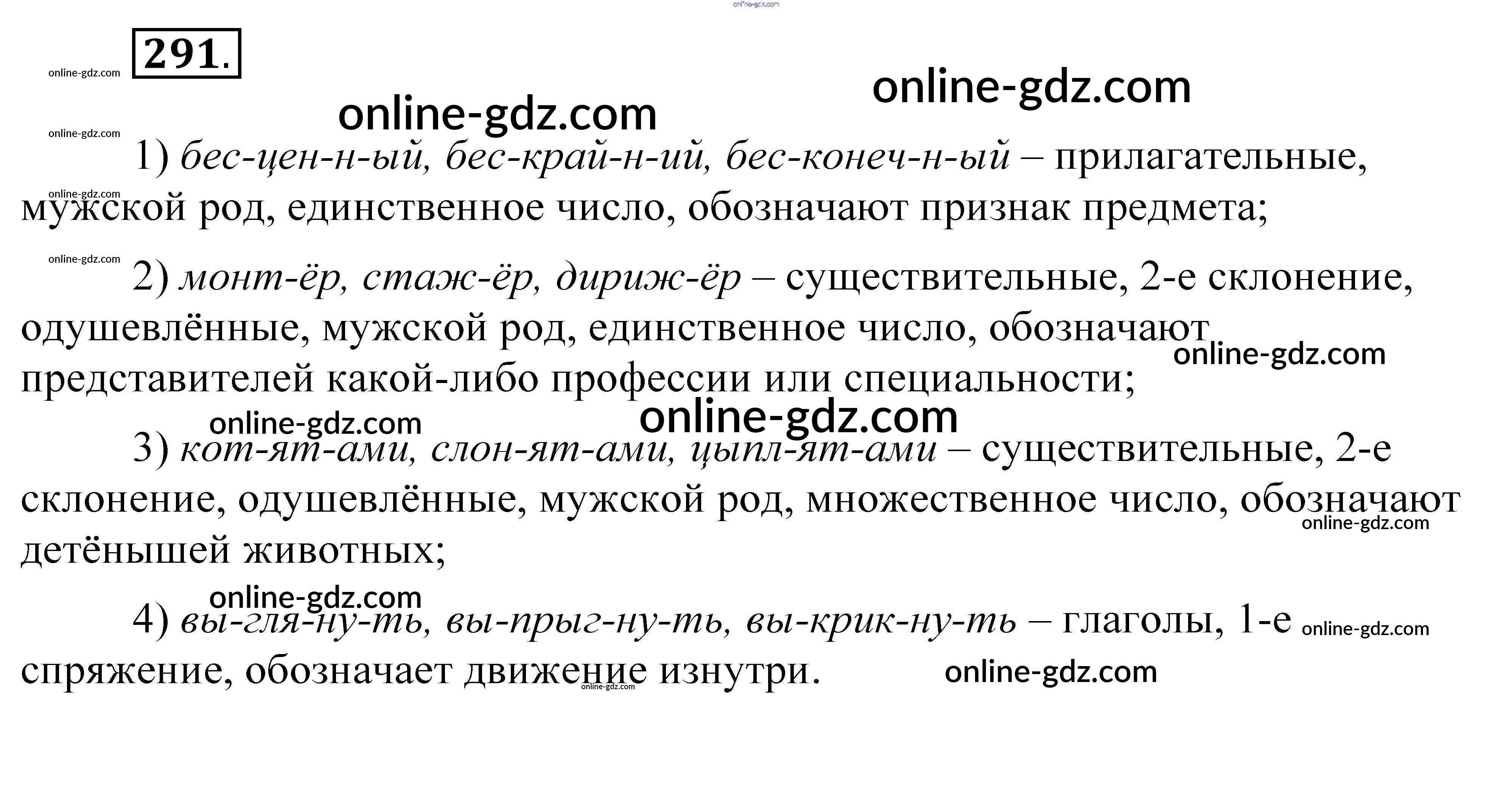 Готовые домашние задания по Русскому языку за 5 класс Учебник Разумовская, Львова 2014 - Упражнения 291