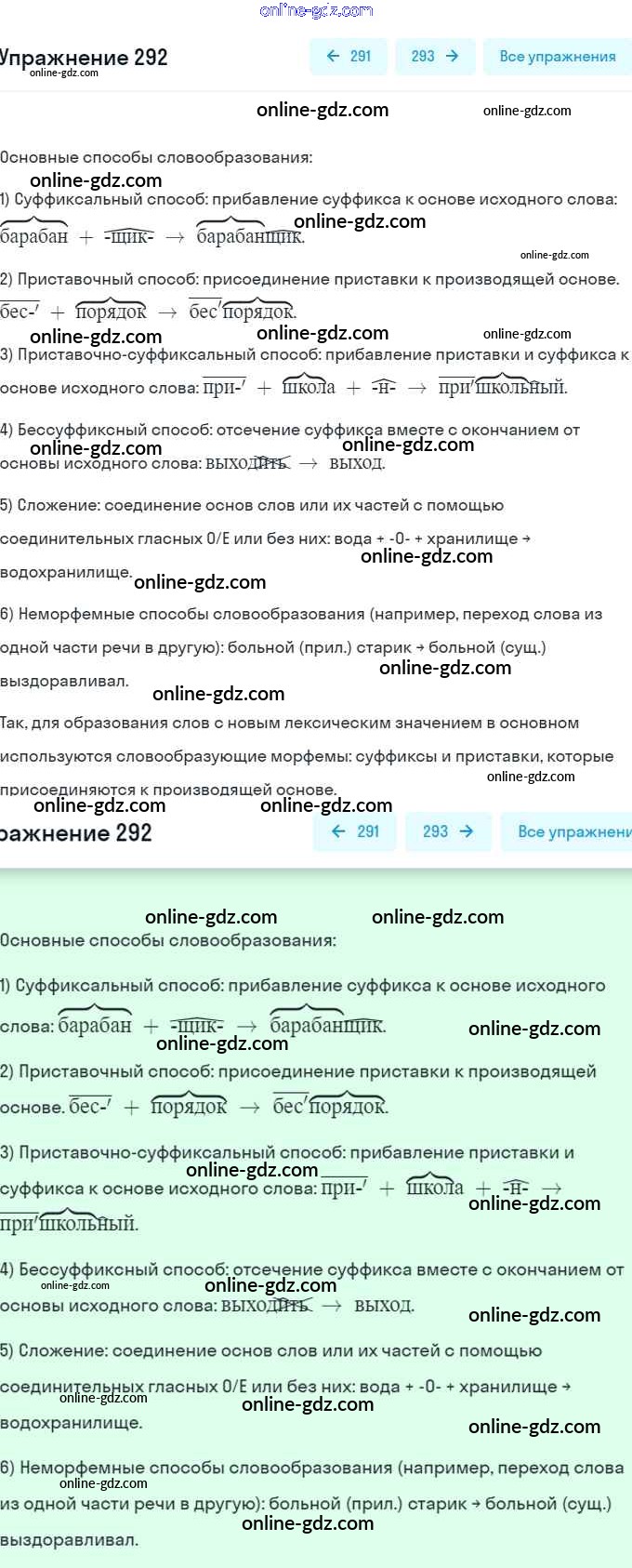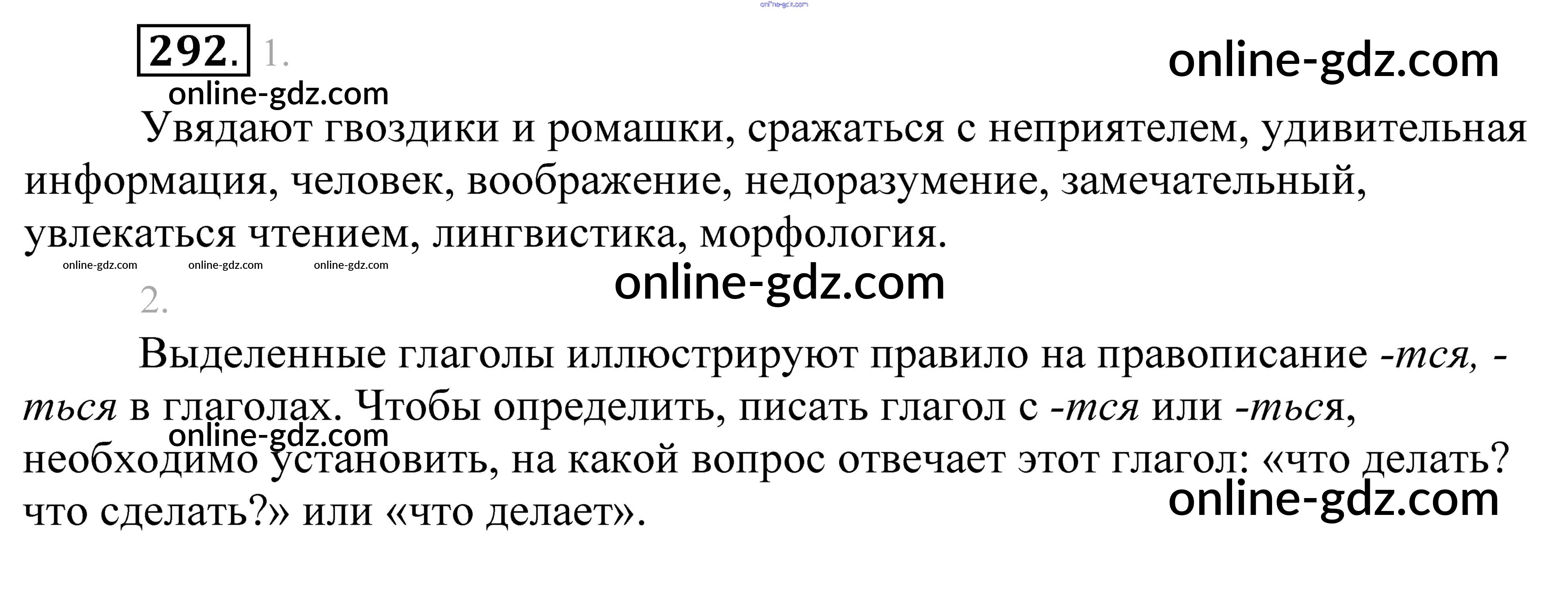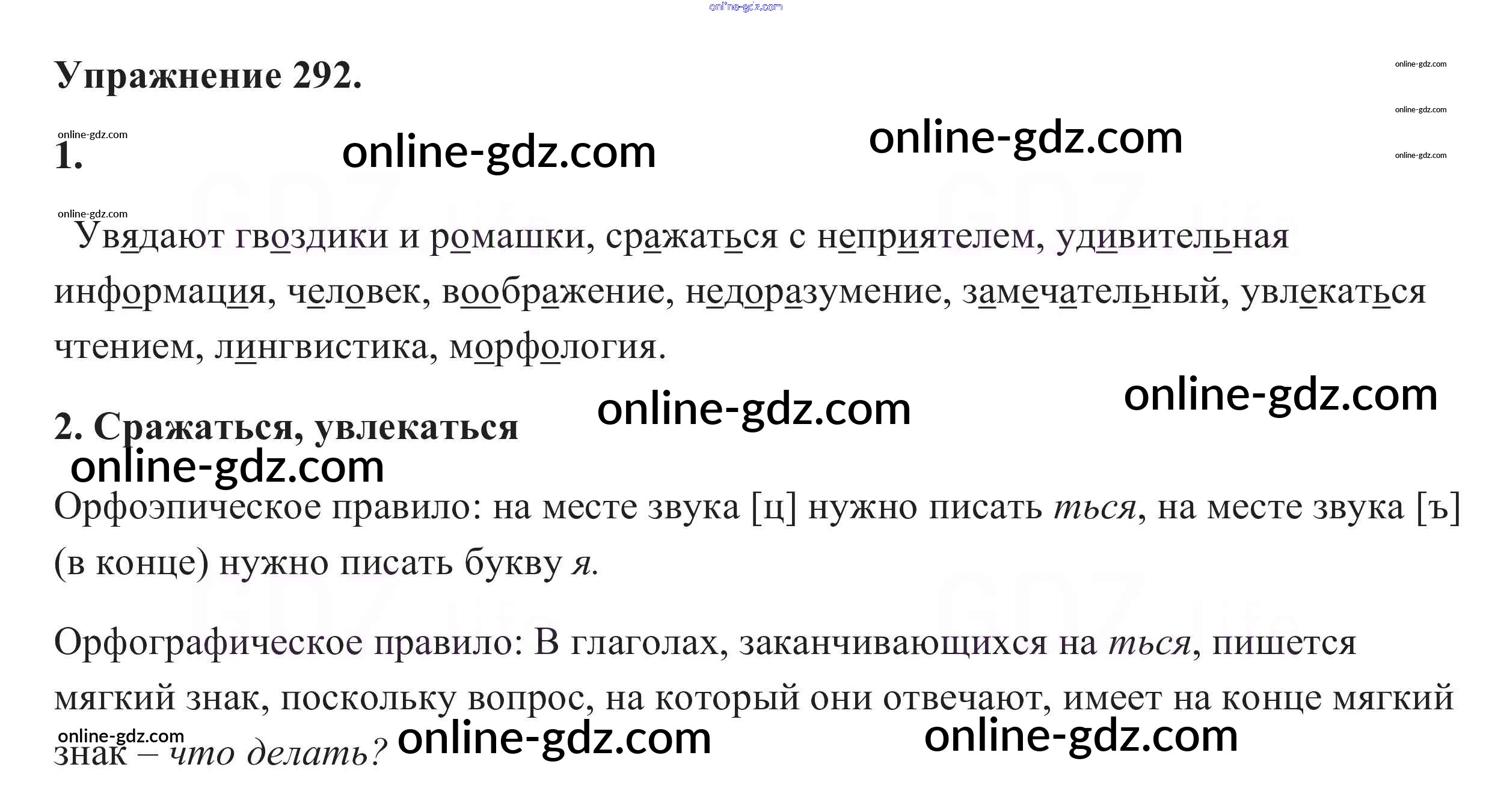Готовые домашние задания по Русскому языку за 5 класс Учебник Разумовская, Львова 2014 - Упражнения 292