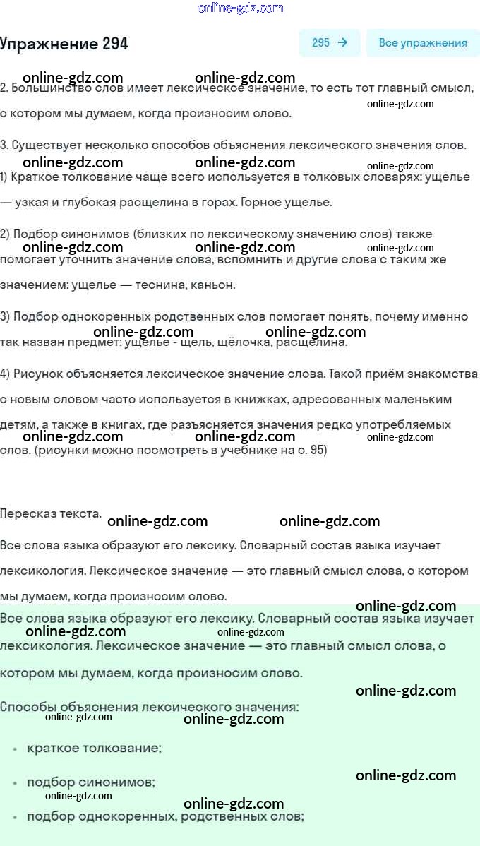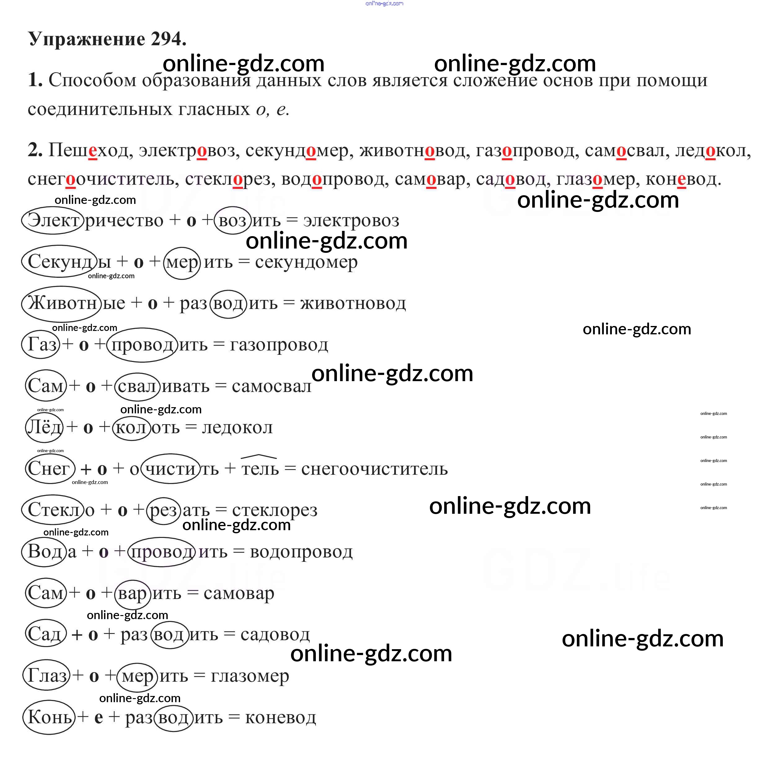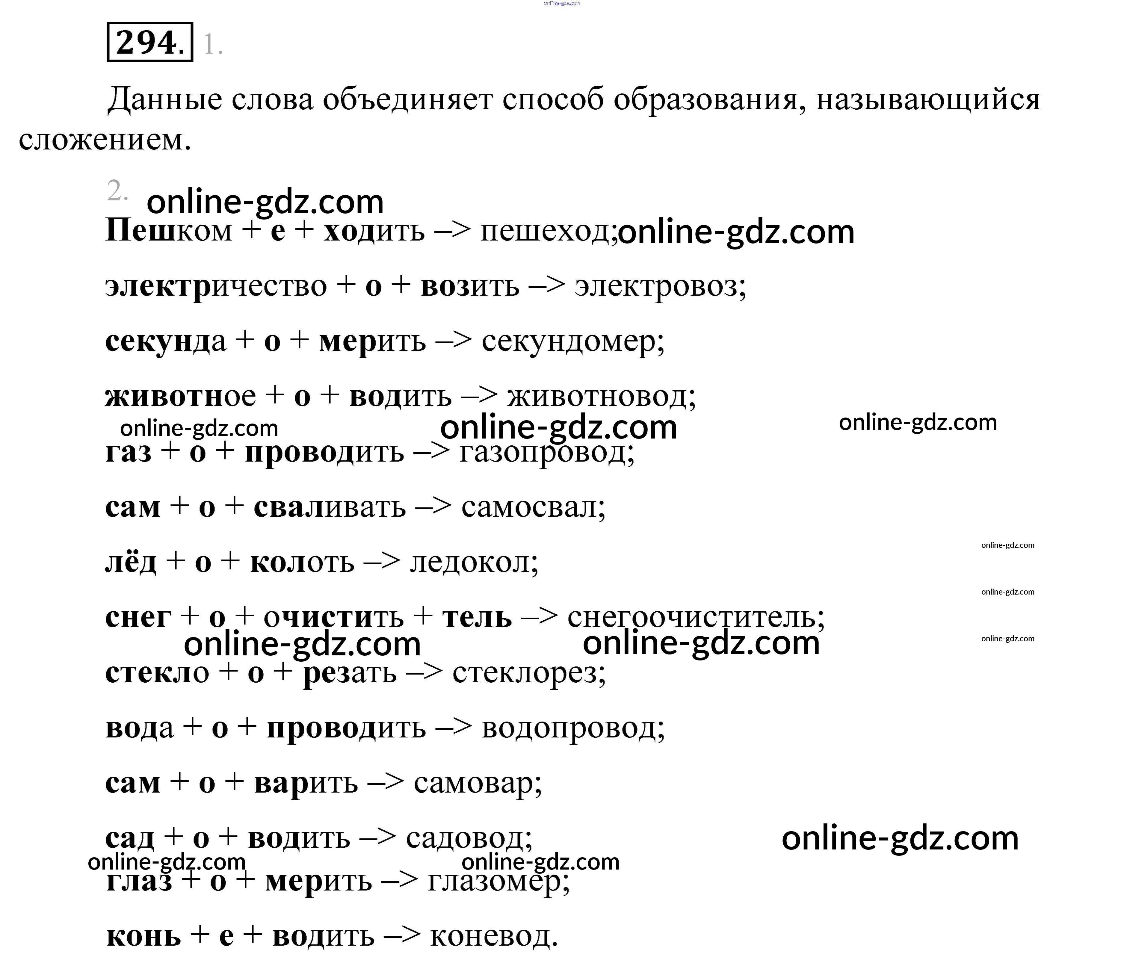 Готовые домашние задания по Русскому языку за 5 класс Учебник Разумовская, Львова 2014 - Упражнения 294