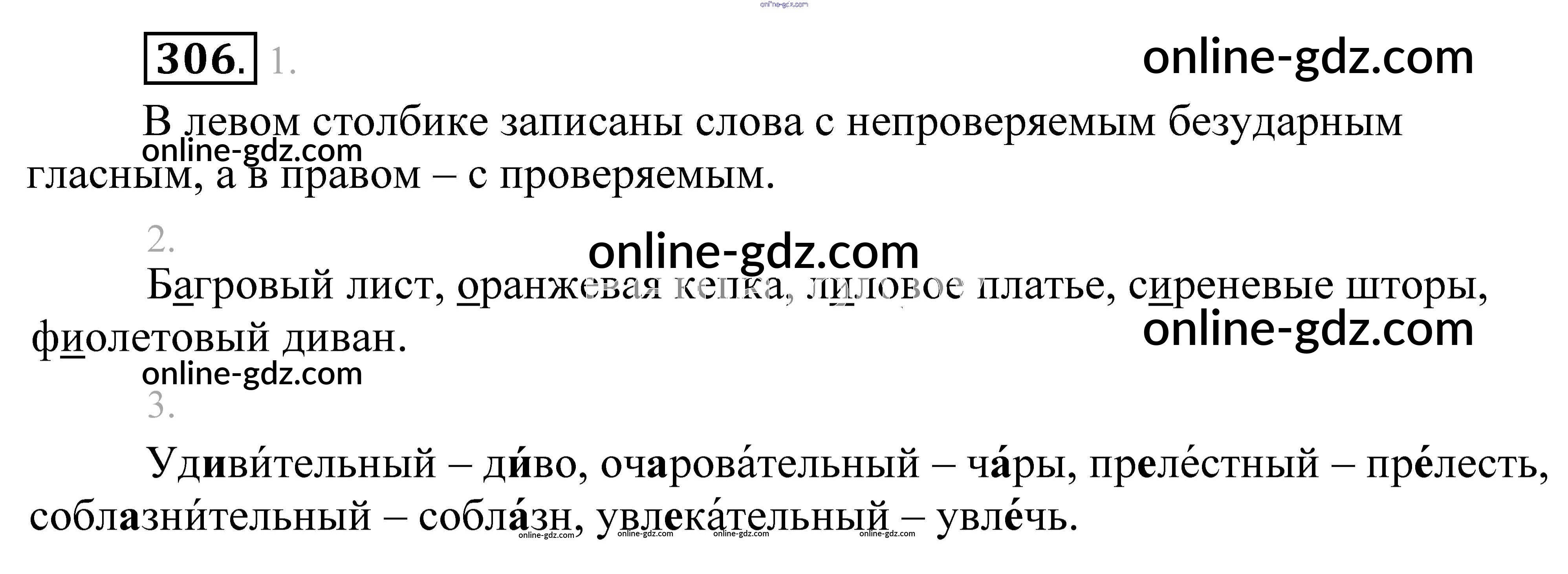 Готовые домашние задания по Русскому языку за 5 класс Учебник Разумовская, Львова 2014 - Упражнения 306