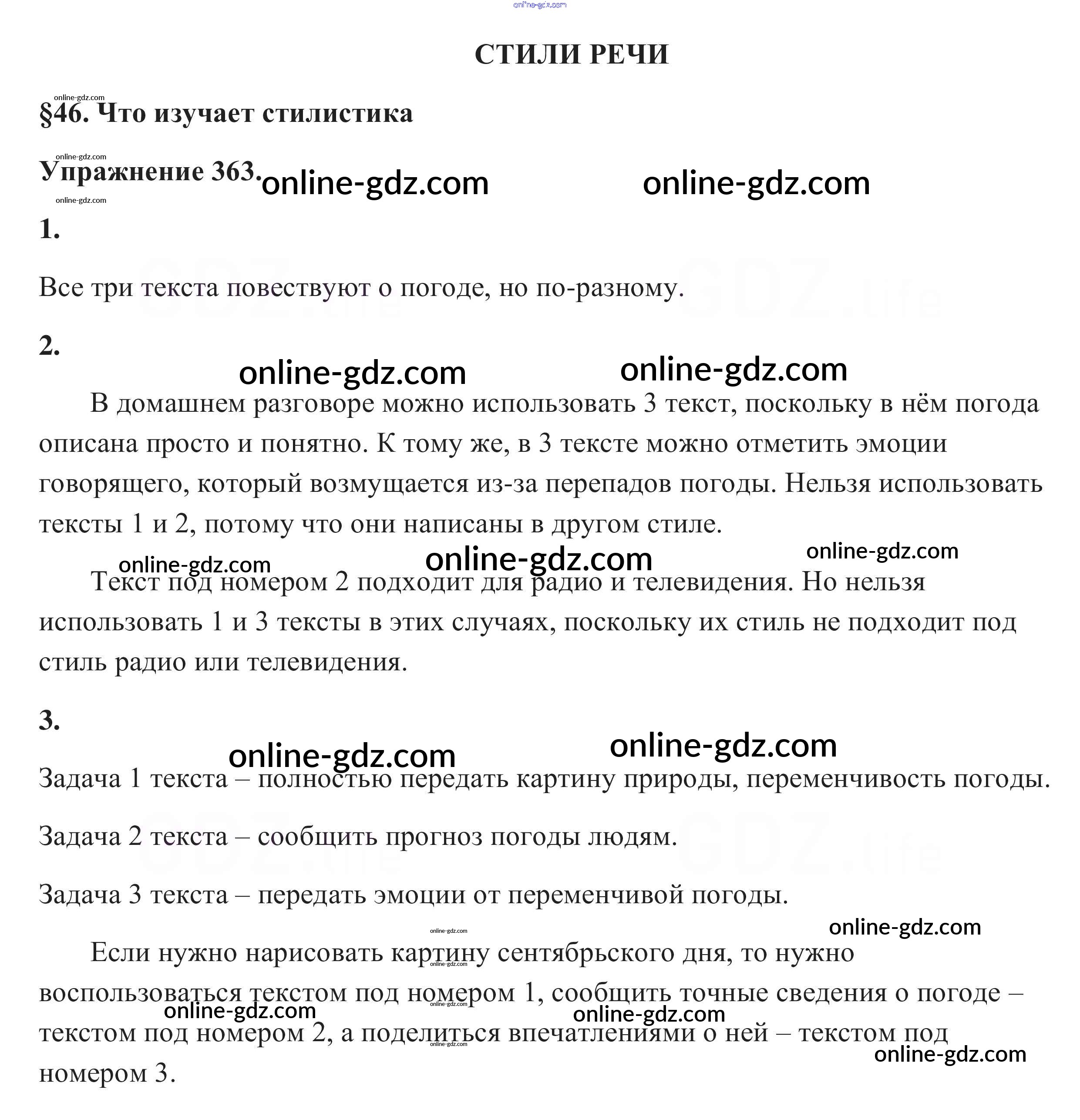 Готовые домашние задания по Русскому языку за 5 класс Учебник Разумовская, Львова 2014 - Упражнения 363