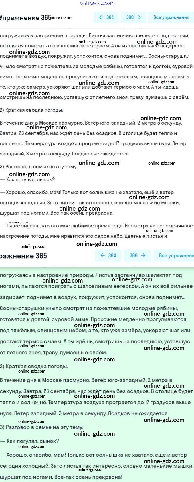 Готовые домашние задания по Русскому языку за 5 класс Учебник Разумовская, Львова 2014 - Упражнения 365