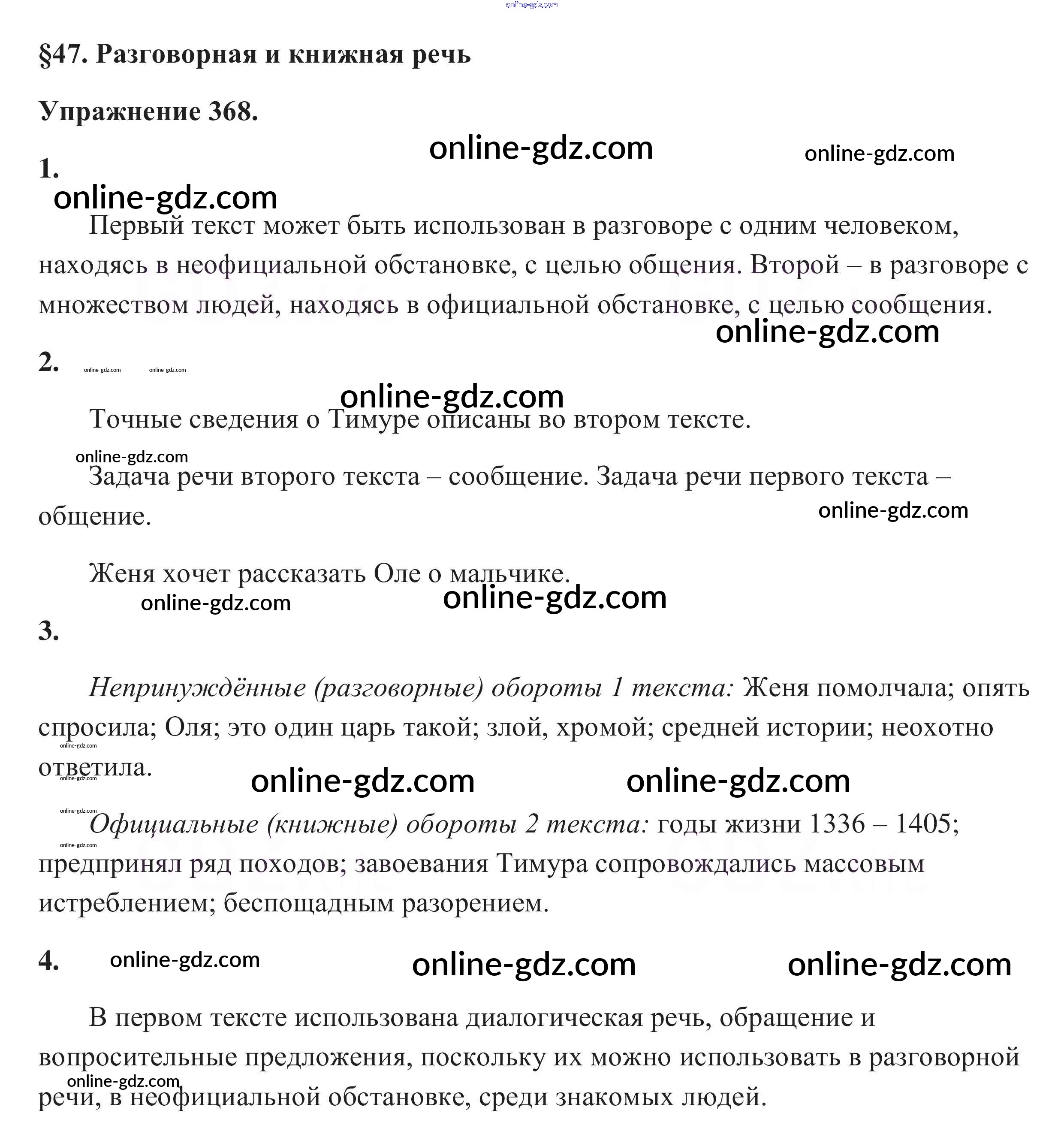 Готовые домашние задания по Русскому языку за 5 класс Учебник Разумовская, Львова 2014 - Упражнения 368