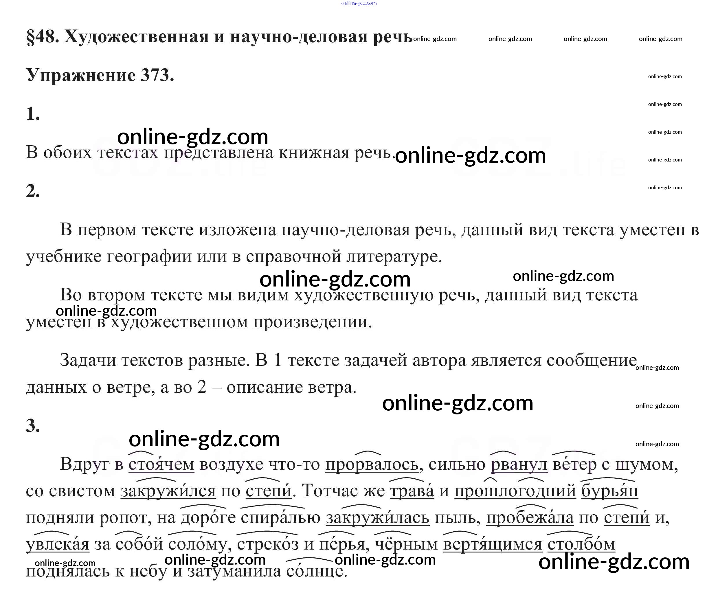 Готовые домашние задания по Русскому языку за 5 класс Учебник Разумовская, Львова 2014 - Упражнения 373