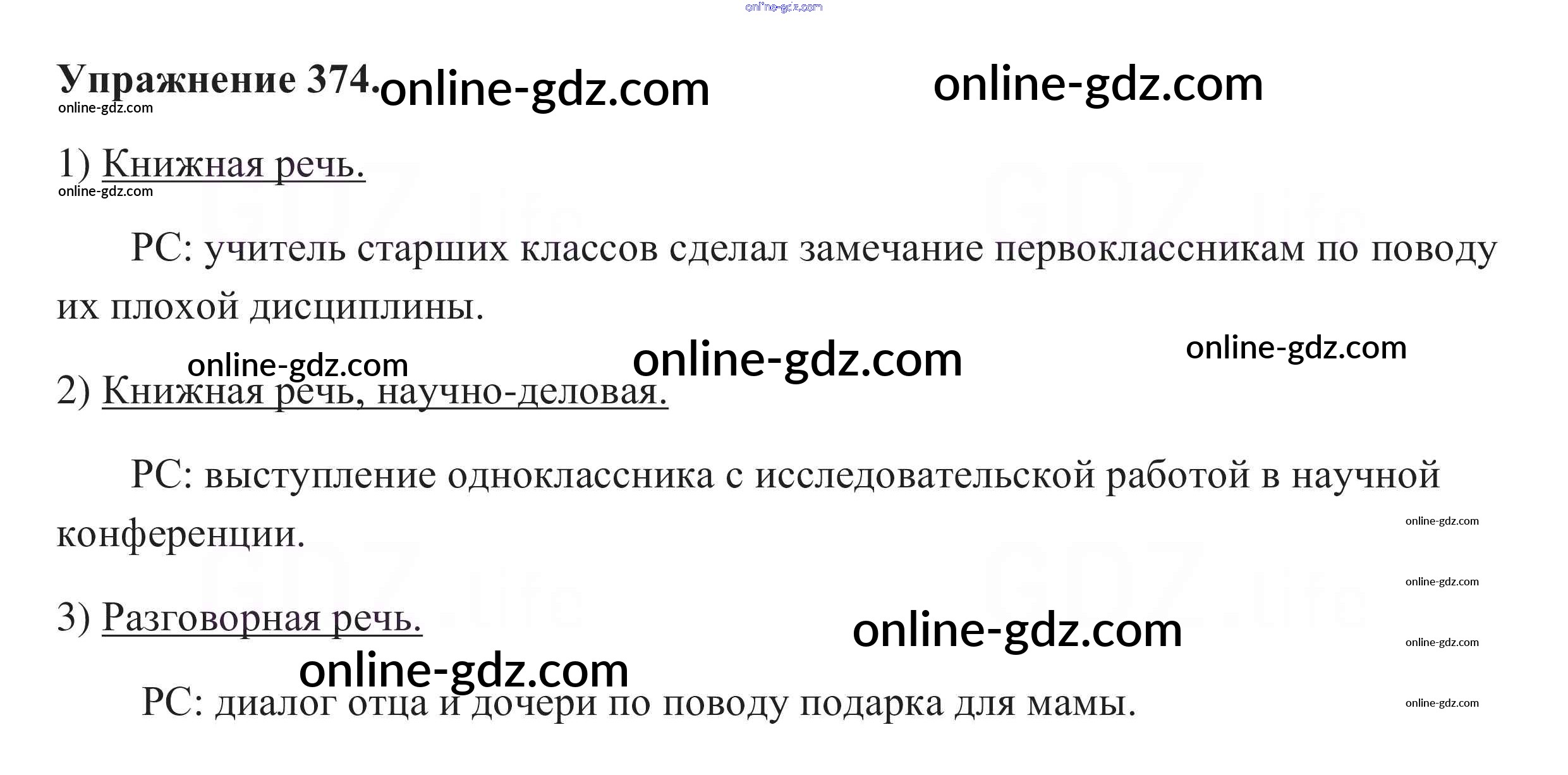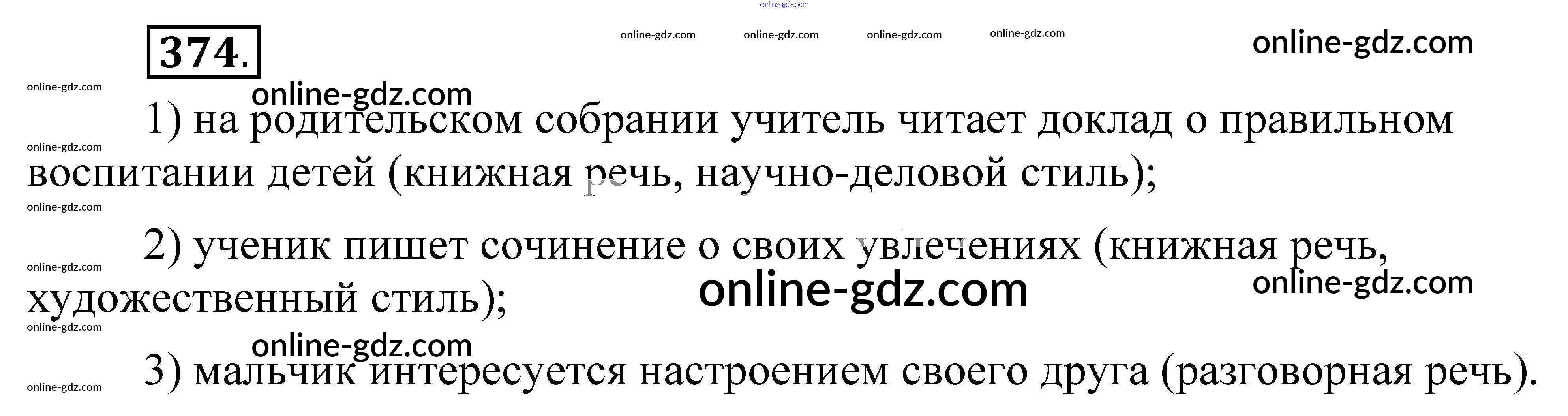 Готовые домашние задания по Русскому языку за 5 класс Учебник Разумовская, Львова 2014 - Упражнения 374