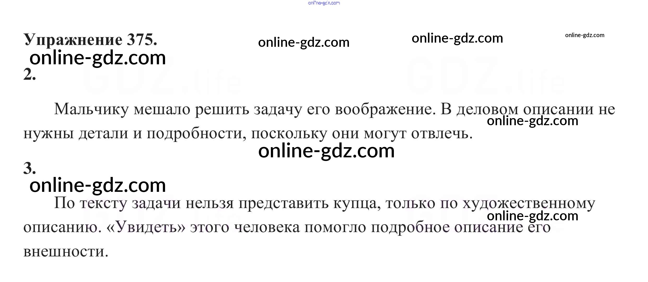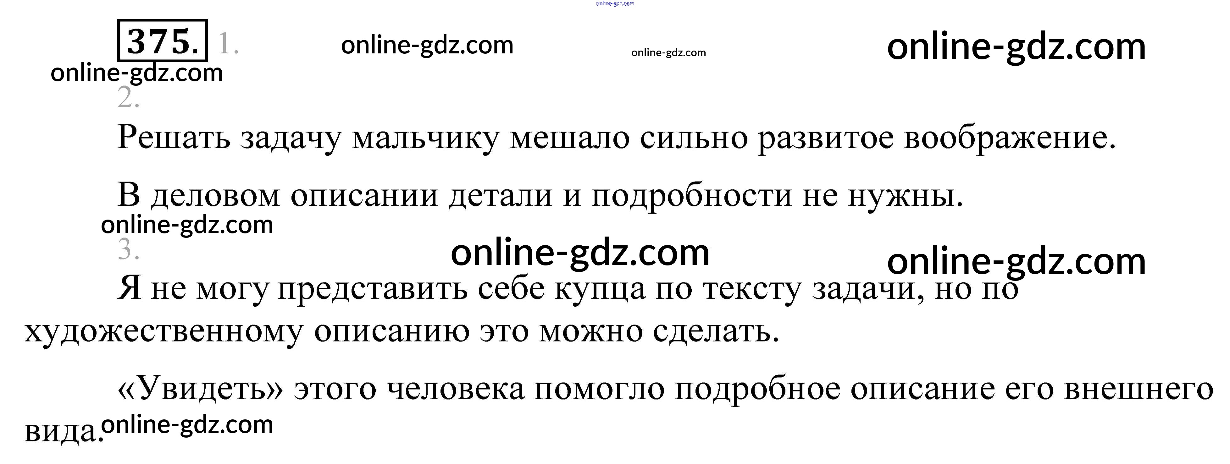 Готовые домашние задания по Русскому языку за 5 класс Учебник Разумовская, Львова 2014 - Упражнения 375
