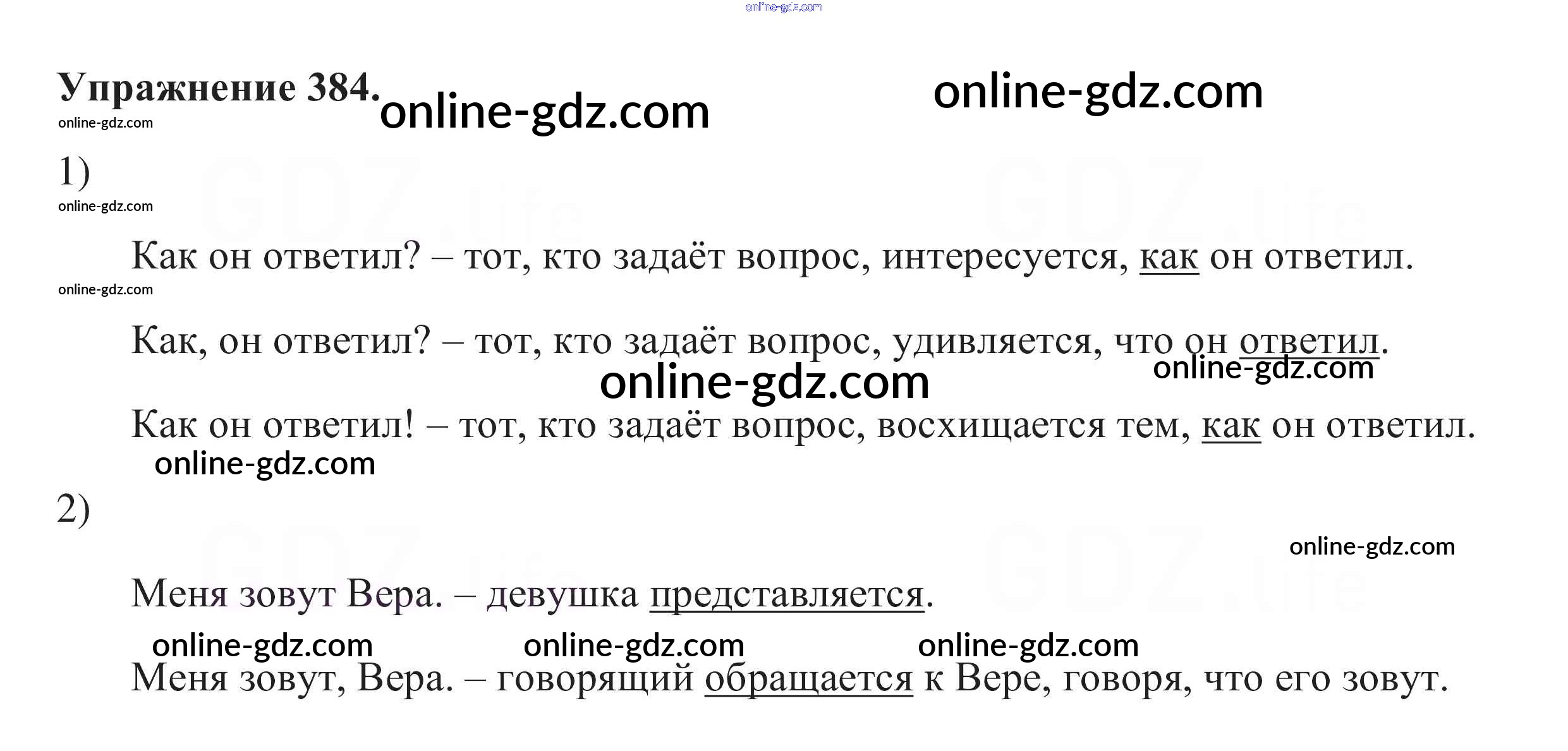 Готовые домашние задания по Русскому языку за 5 класс Учебник Разумовская, Львова 2014 - Упражнения 384