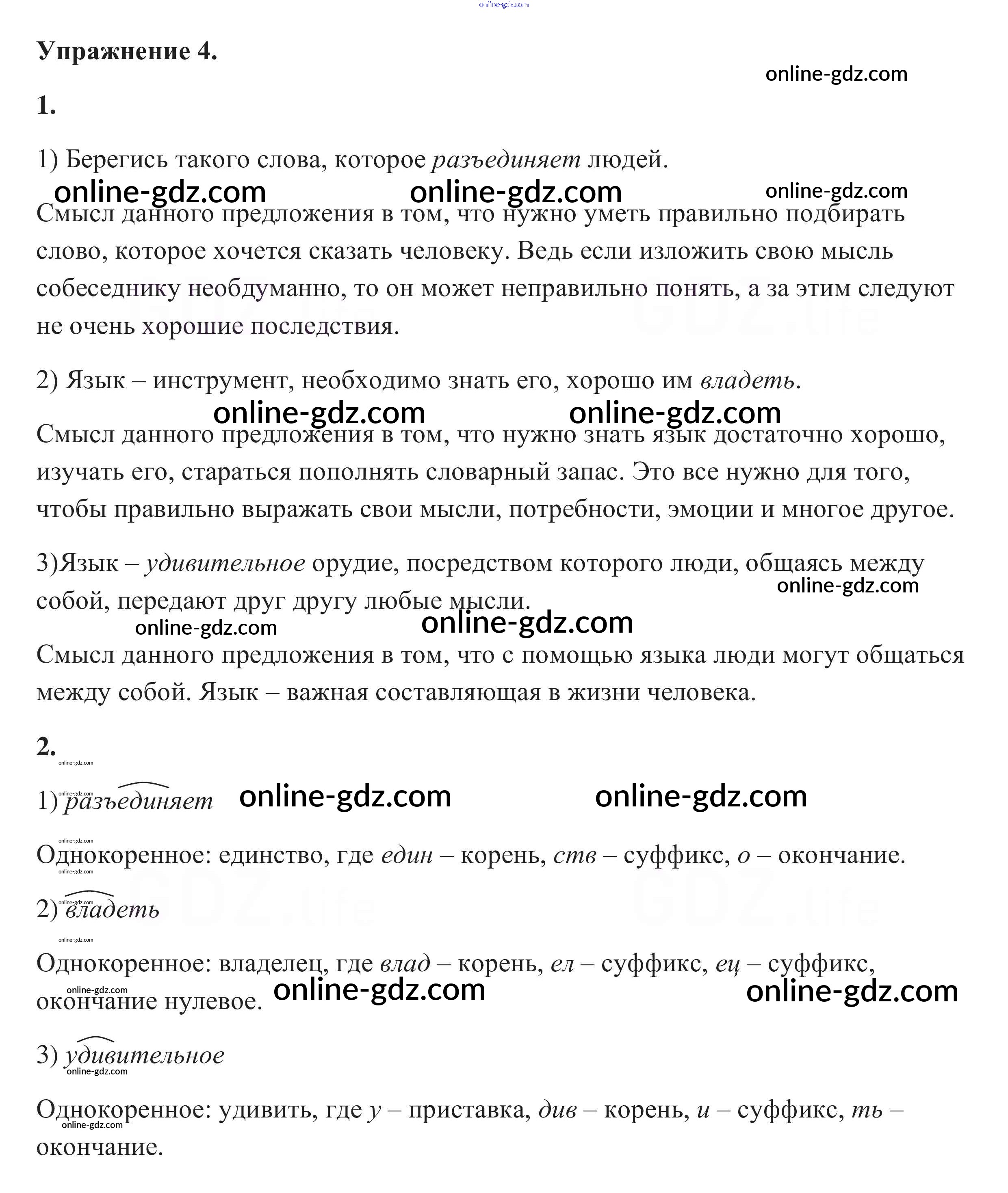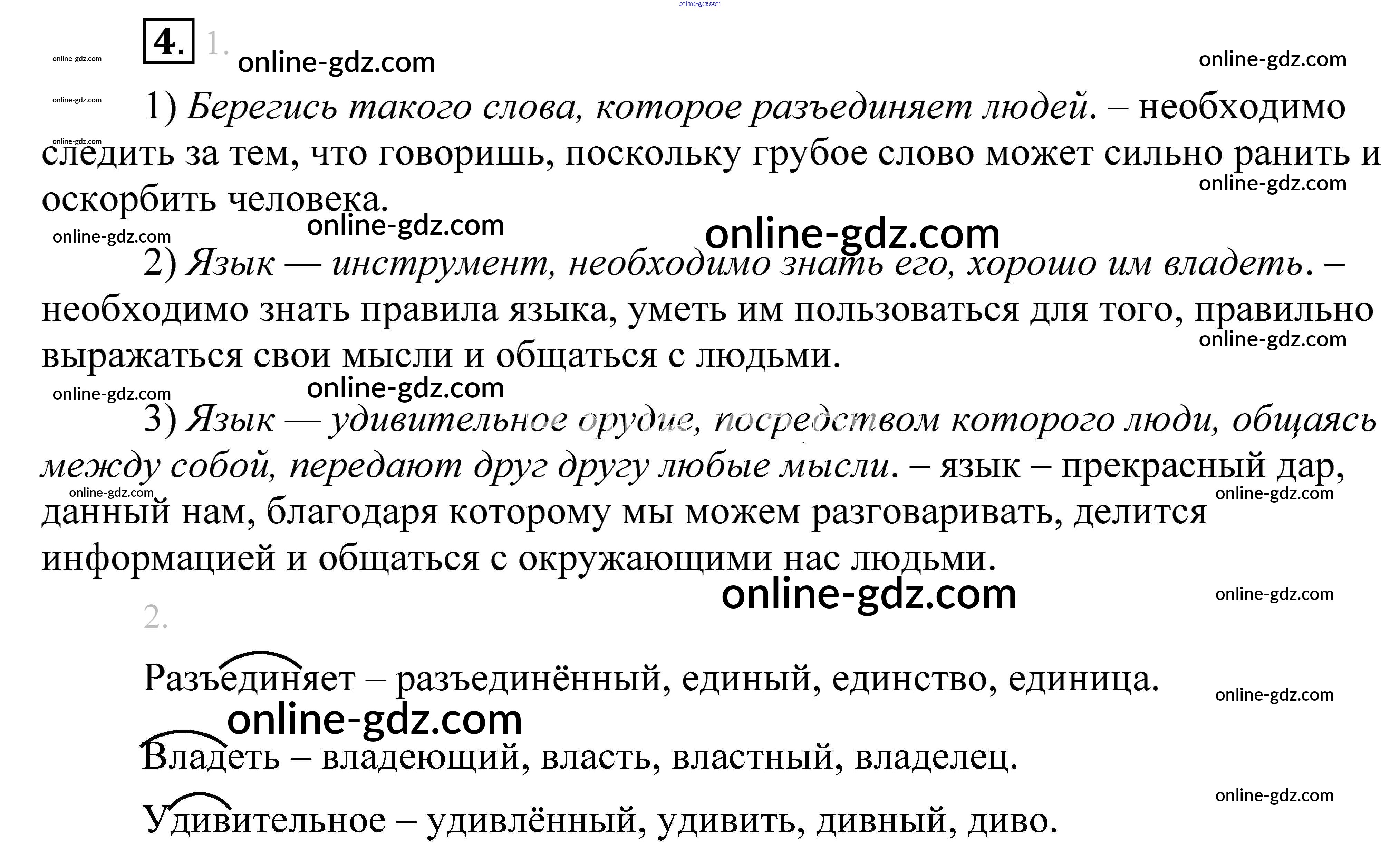Готовые домашние задания по Русскому языку за 5 класс Учебник Разумовская, Львова 2014 - Упражнения 4