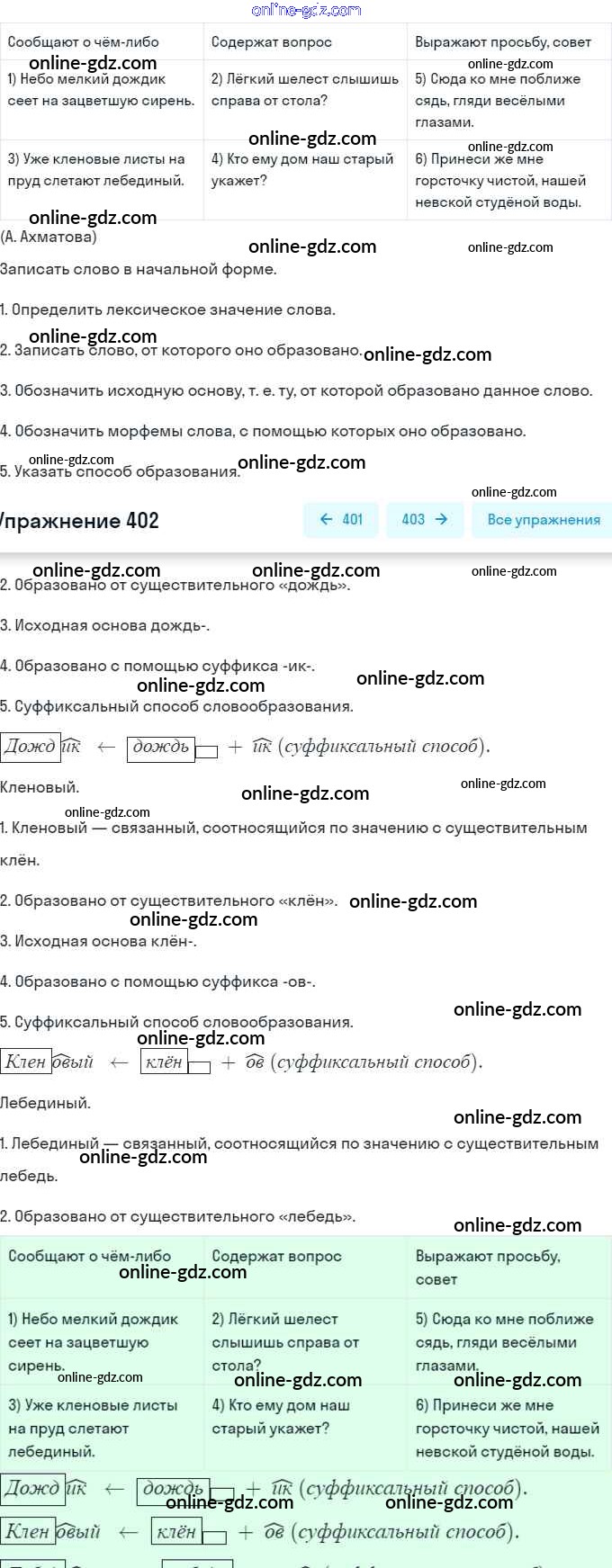 Готовые домашние задания по Русскому языку за 5 класс Учебник Разумовская, Львова 2014 - Упражнения 402