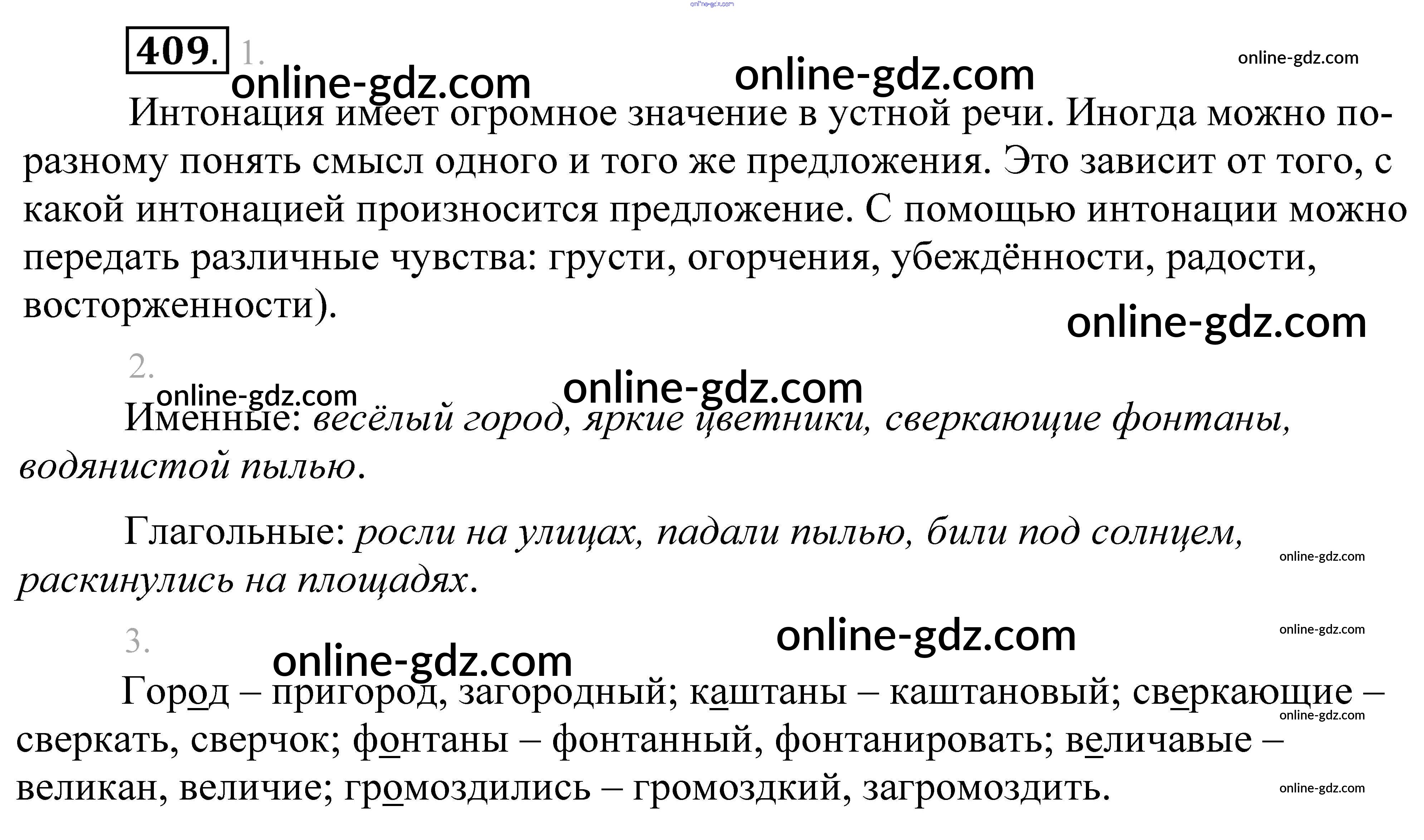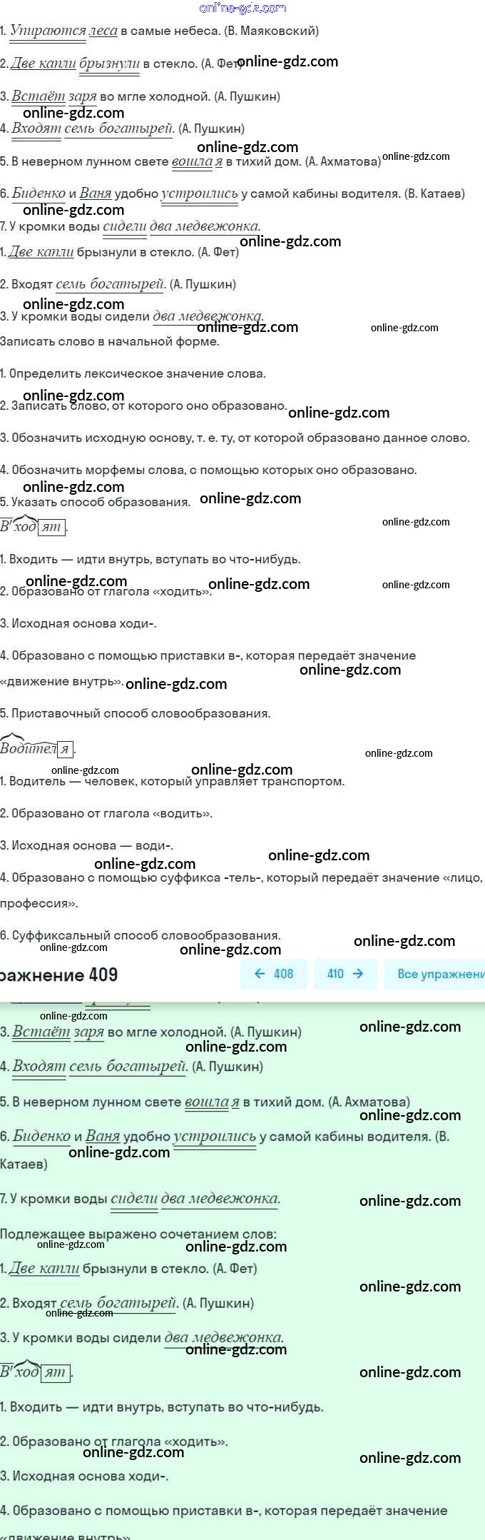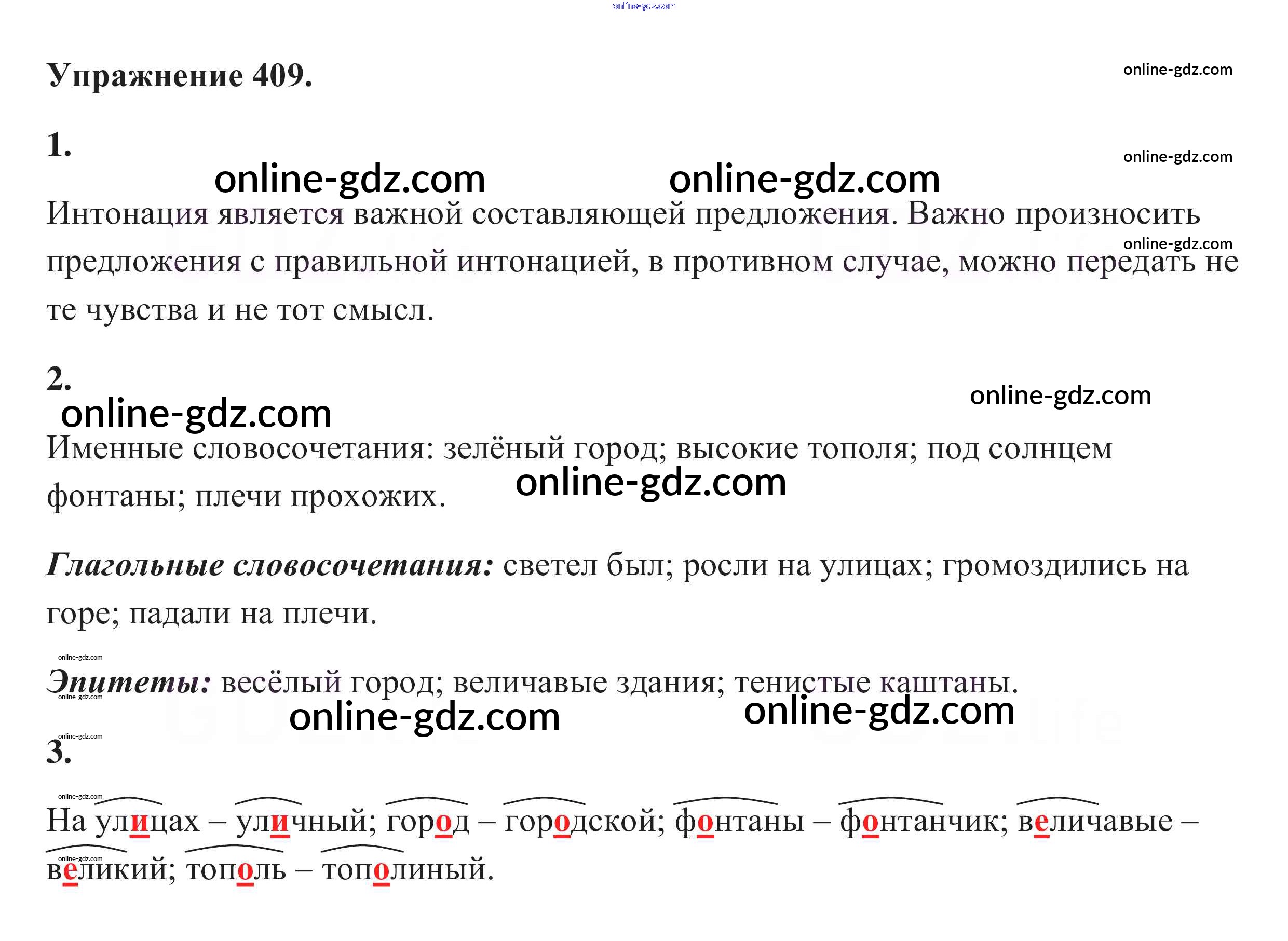 Готовые домашние задания по Русскому языку за 5 класс Учебник Разумовская, Львова 2014 - Упражнения 409