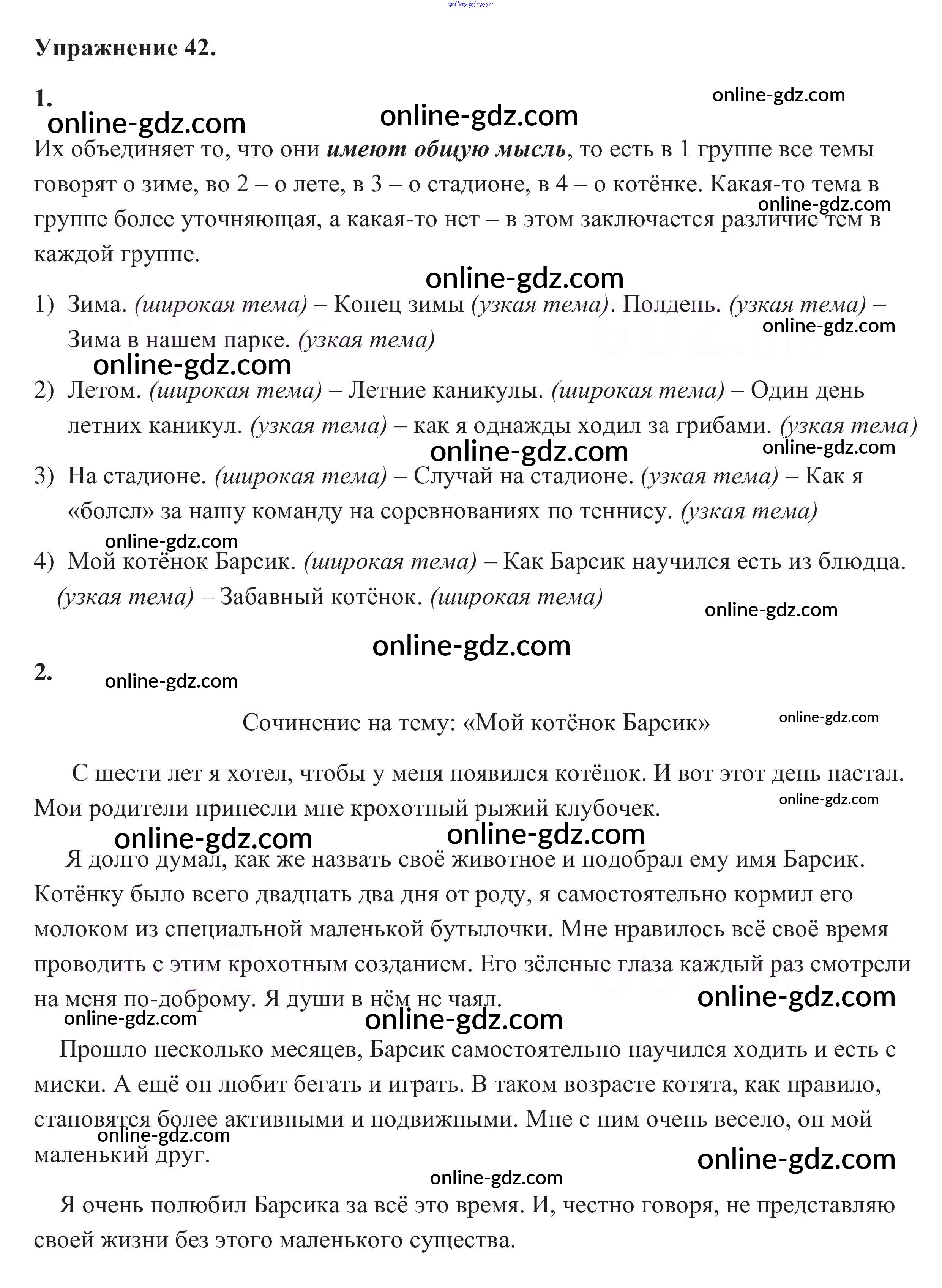 Готовые домашние задания по Русскому языку за 5 класс Учебник Разумовская, Львова 2014 - Упражнения 42