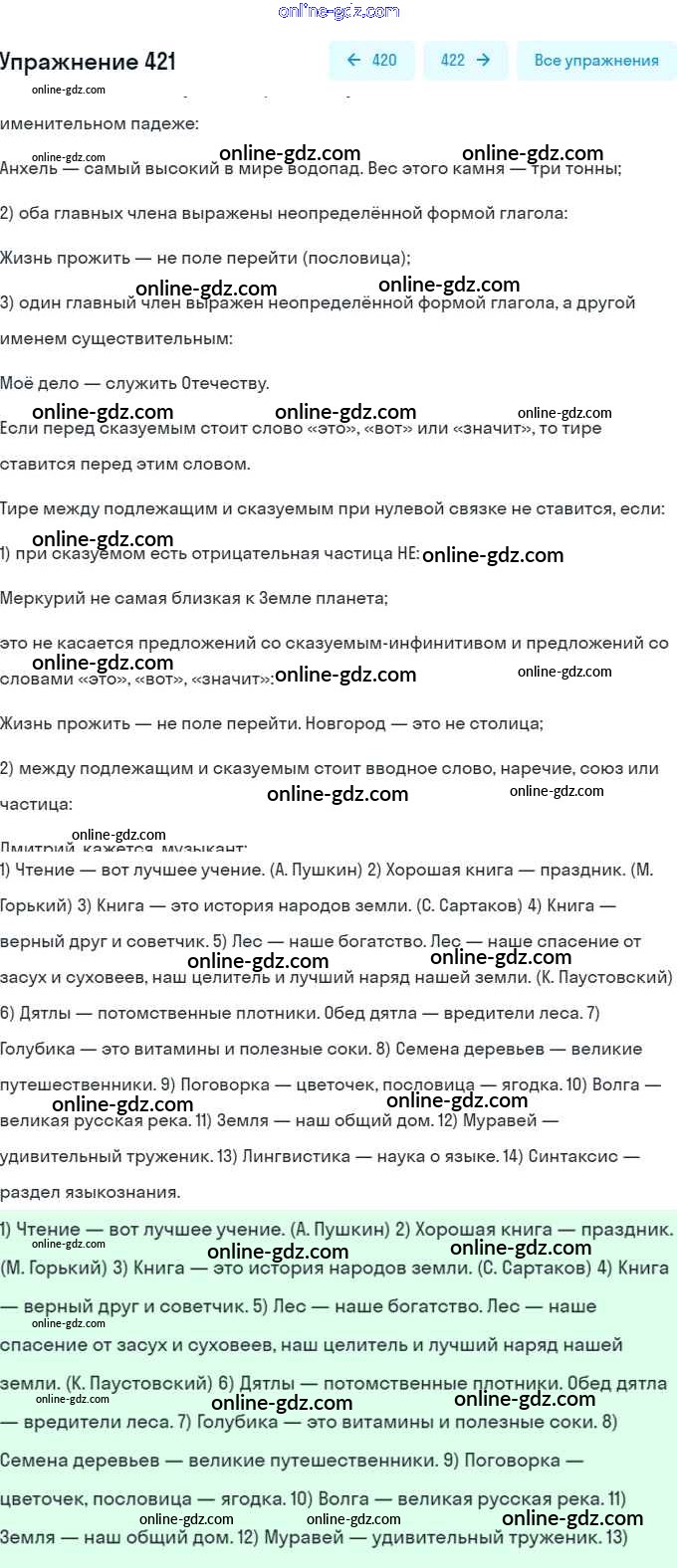 Готовые домашние задания по Русскому языку за 5 класс Учебник Разумовская, Львова 2014 - Упражнения 421