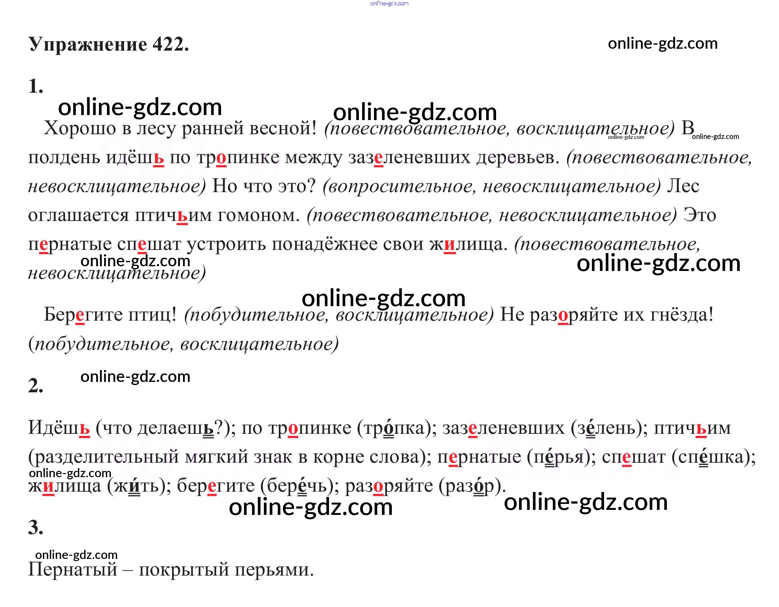 Готовые домашние задания по Русскому языку за 5 класс Учебник Разумовская, Львова 2014 - Упражнения 422