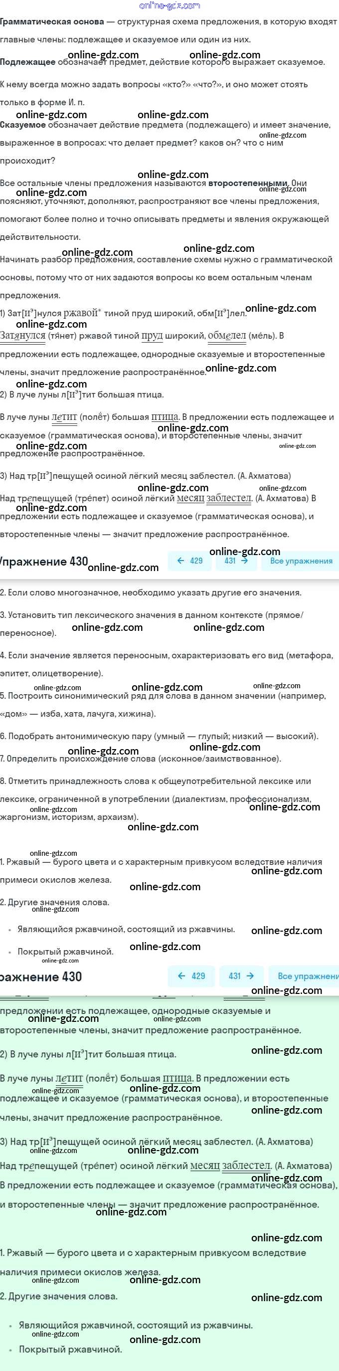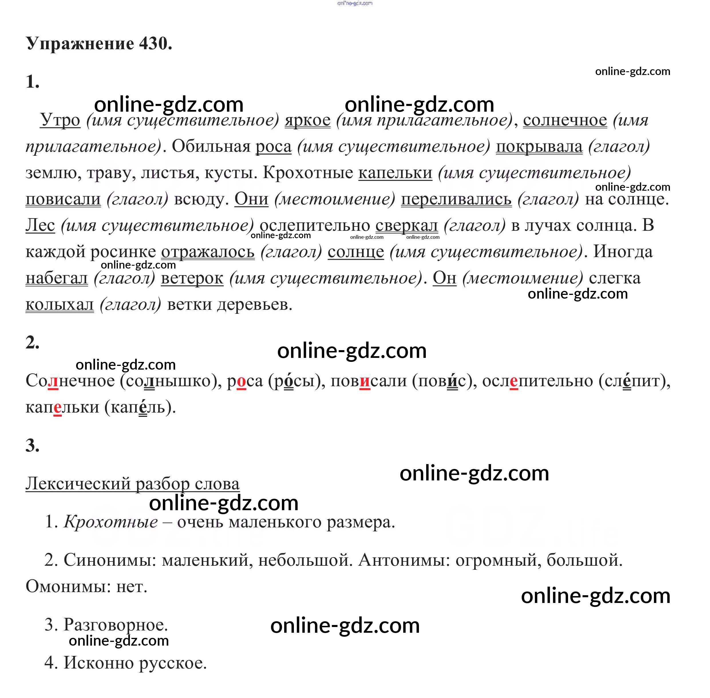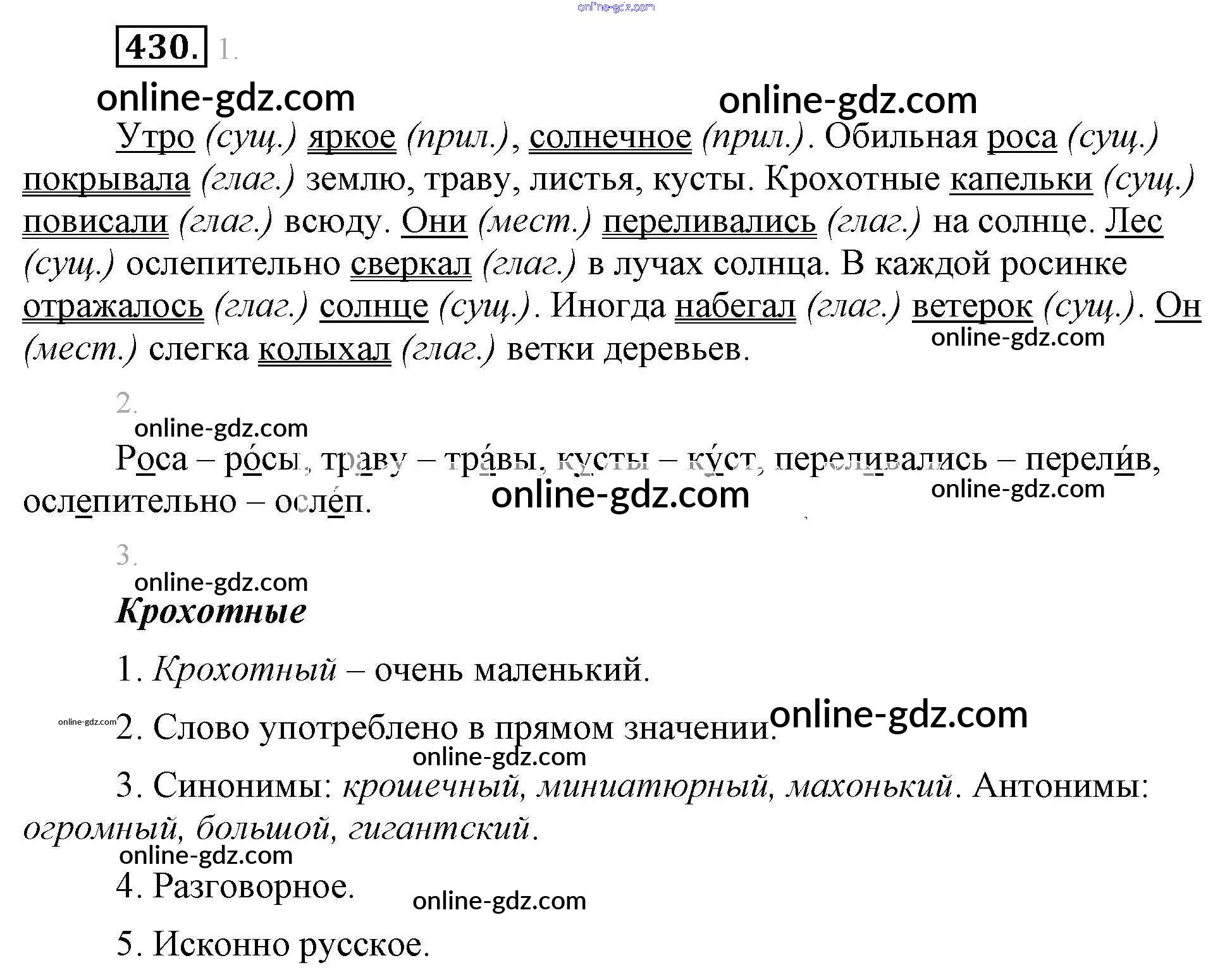 Готовые домашние задания по Русскому языку за 5 класс Учебник Разумовская, Львова 2014 - Упражнения 430