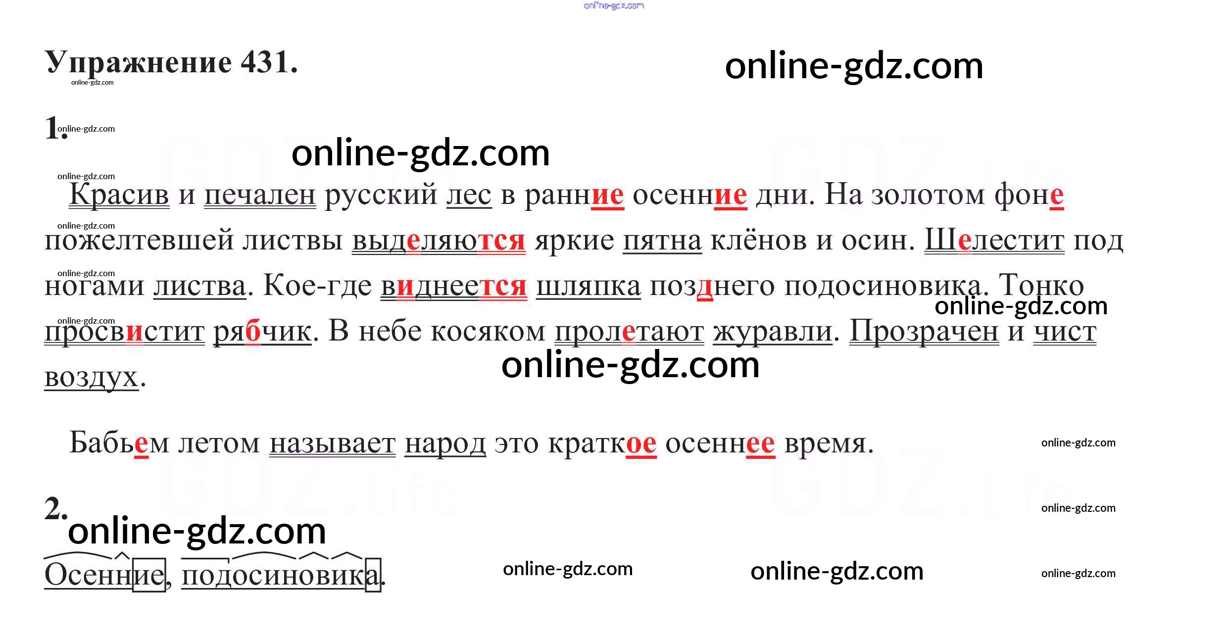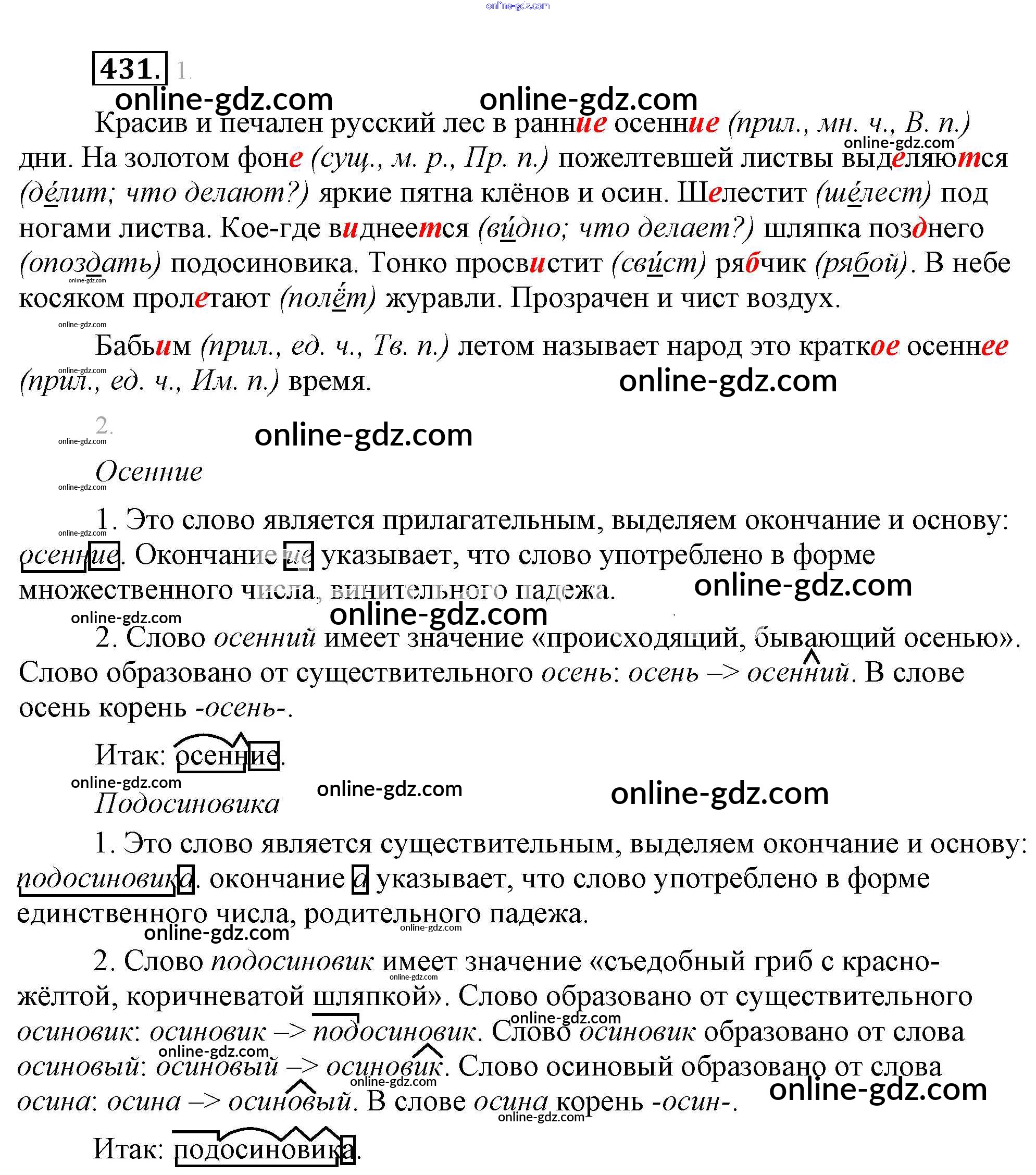 Готовые домашние задания по Русскому языку за 5 класс Учебник Разумовская, Львова 2014 - Упражнения 431
