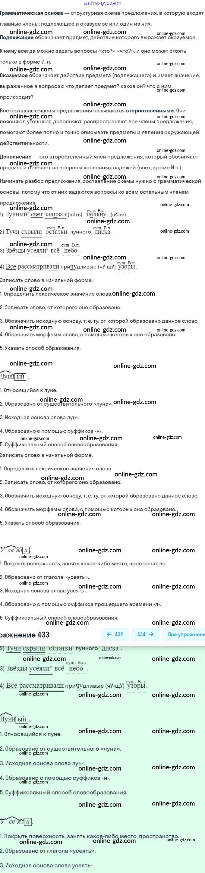 Готовые домашние задания по Русскому языку за 5 класс Учебник Разумовская, Львова 2014 - Упражнения 433
